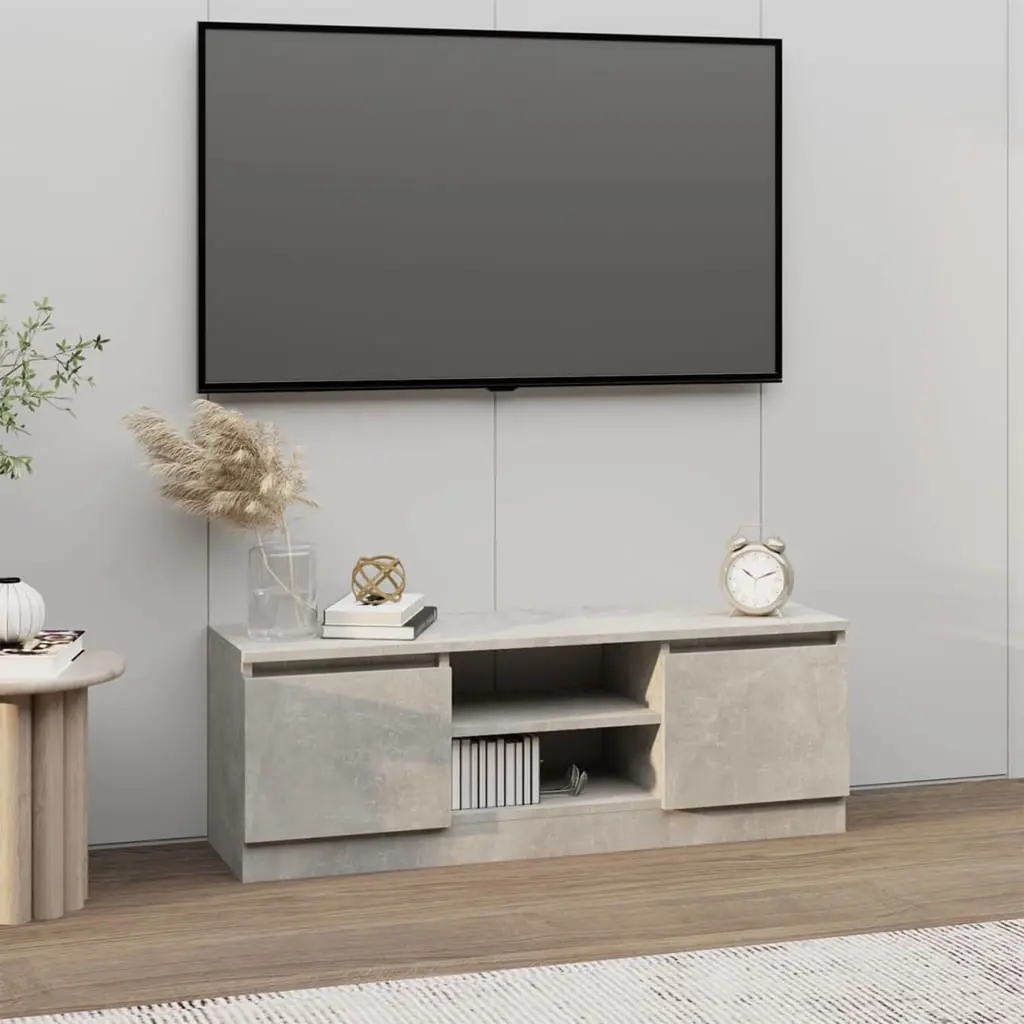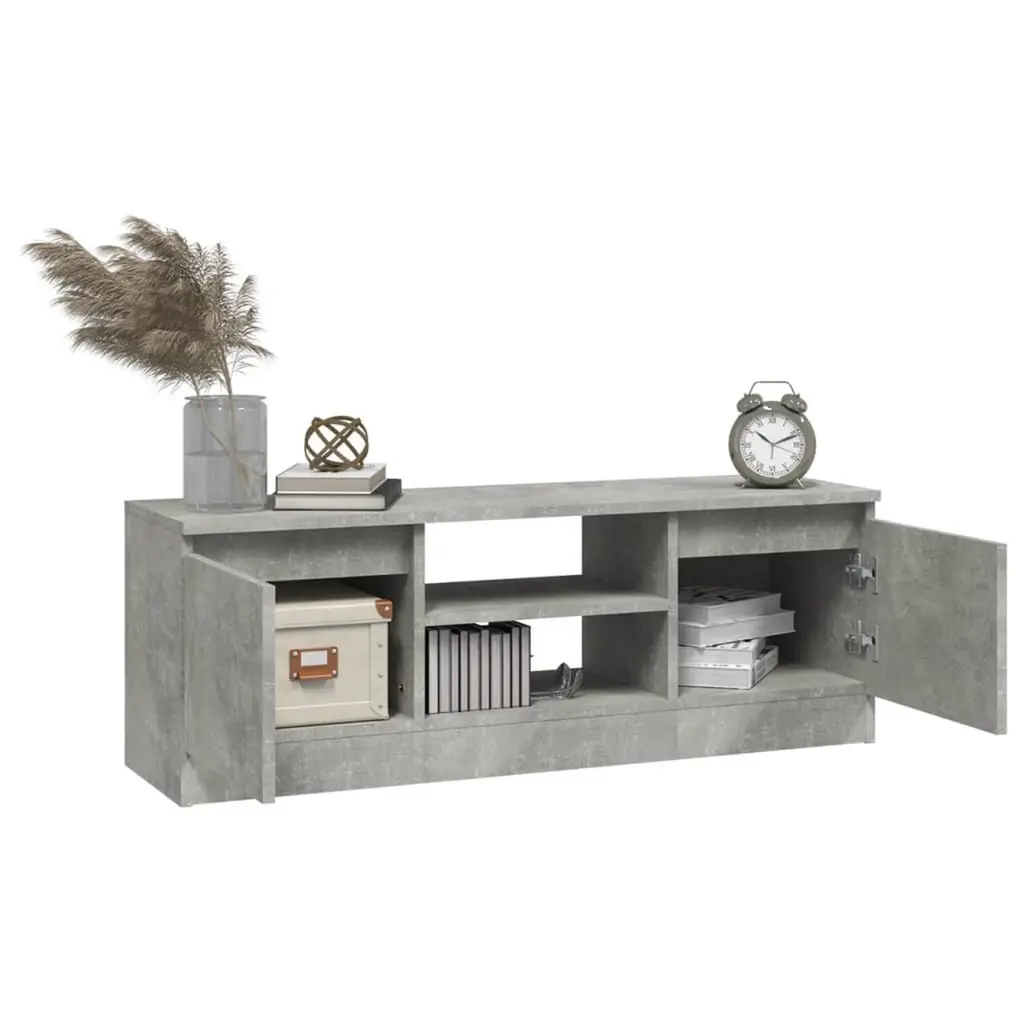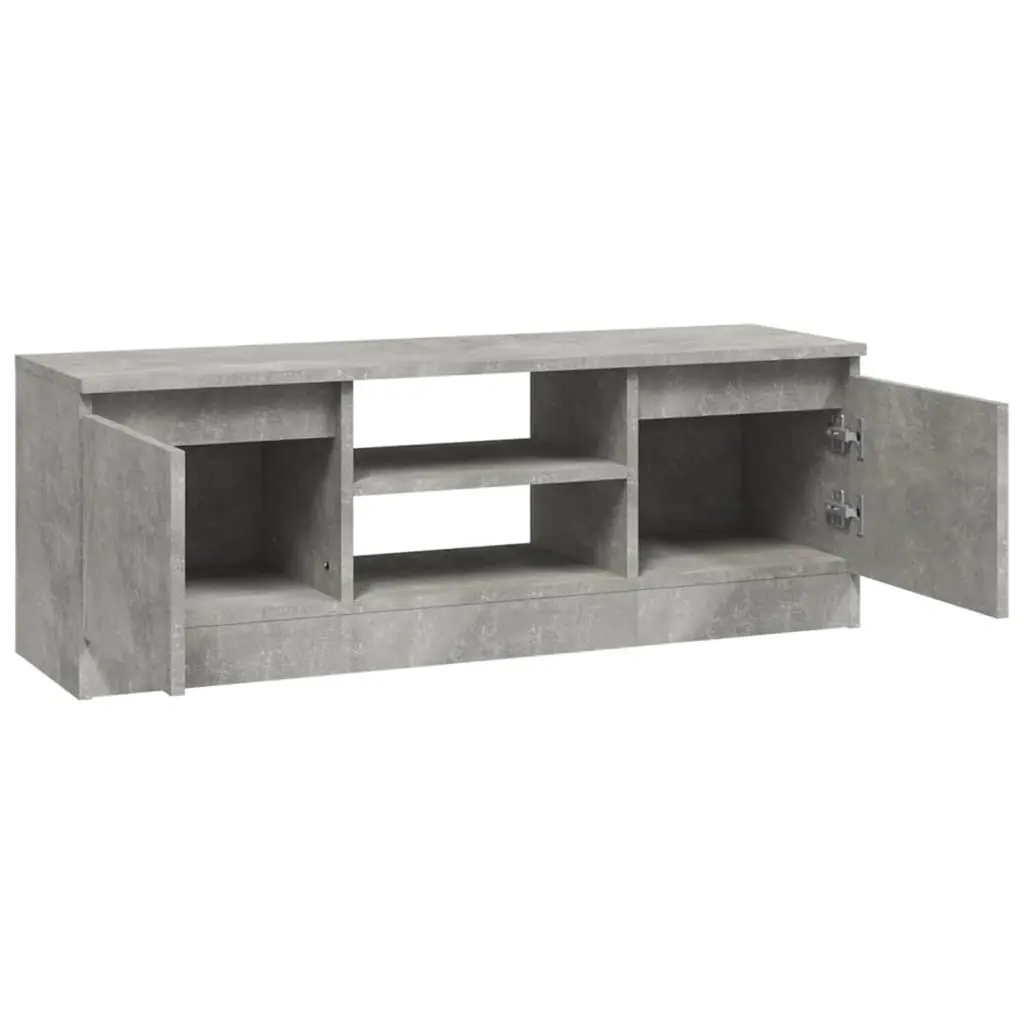 This contemporary TV cabinet in a stunning concrete gray finish seamlessly combines style and functionality, making it a great addition to your living space. With its sleek lines and solid engineered wood construction, this cabinet not only elevates the look of your room but also offers practical storage solutions for your media equipment and decorative items. Ample Storage: With two shelves and two hinge doors, it's perfect for displaying and storing all your essential media accessories.Durable Construction: Crafted from premium engineered wood, this cabinet is built to withstand daily use while maintaining its sleek appearance.Stylish Design: The beautiful concrete gray color coupled with a smooth matte finish gives this cabinet a contemporary look that complements any decor.Versatile Usage: Ideal for both media storage and as a stylish display unit in living rooms, it beautifully accommodates your entertainment needs.Easy to Maintain: The cabinet's material ensures that it can be easily cleaned and cared for, allowing you to enjoy it for years to come.
