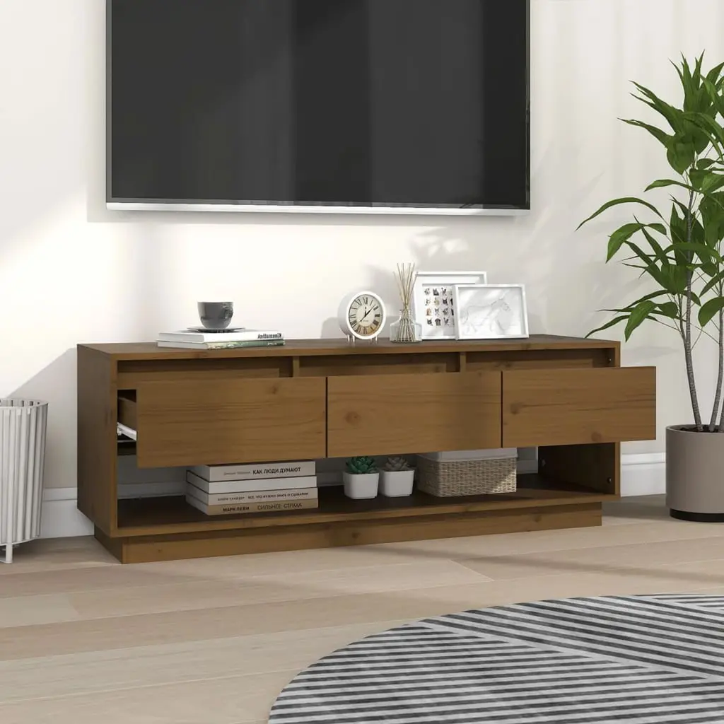 Vidaxl Tv Stand Honey Brown Solid Pine Wood Medium Tv Stand