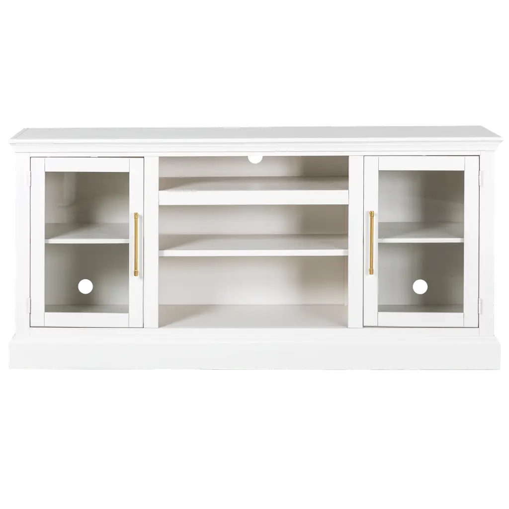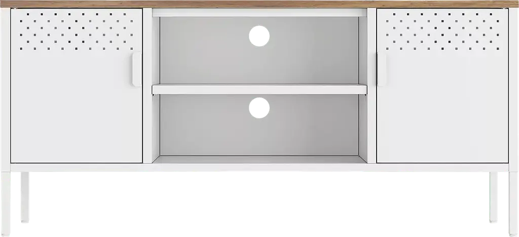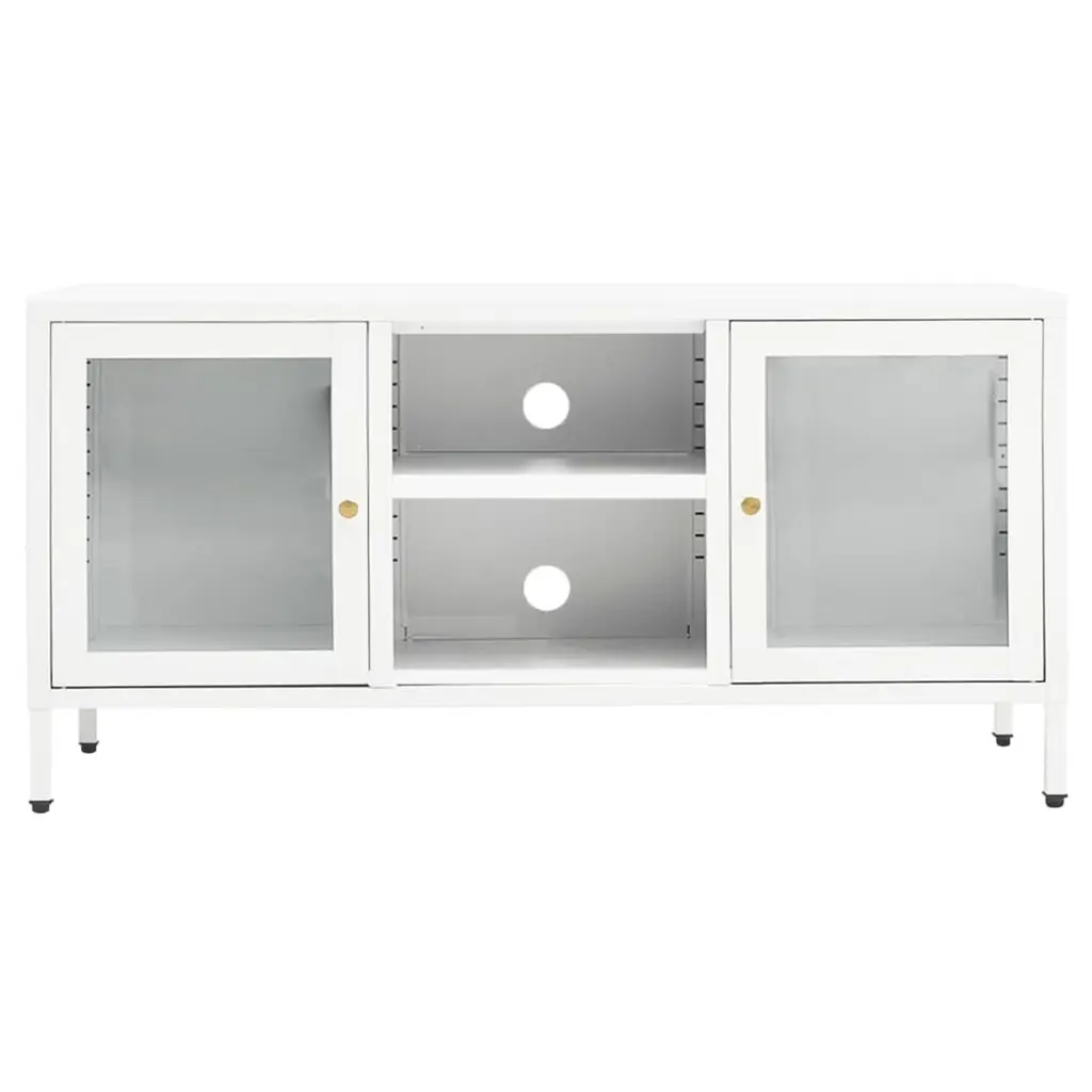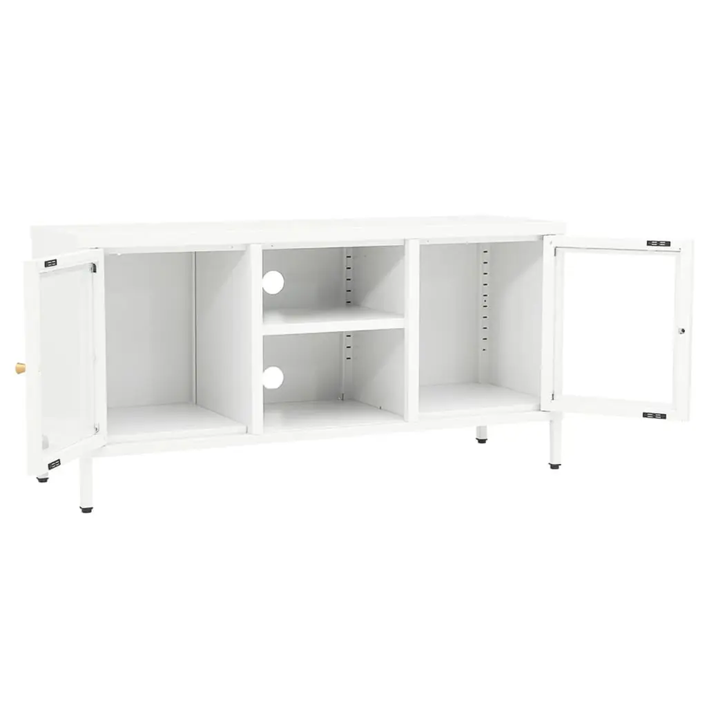 This stylish TV cabinet, featuring a sleek and classic design, makes a perfect decorative as well as practical addition to your existing decor.Made of steel, the construction of this TV unit is sturdy and durable, ensuring years of service. The TV unit features a compartment in the glass door and open shelves, offering ample storage space to store and display your books, magazines, DVDs, vases and other decorative items well organized and within reach. Also, the shelf can be installed at different level to change the storage space size. The feet can be adjusted easily at required height and help the cabinet keep stable. Additionally, it is also easy to clean with a damp cloth.