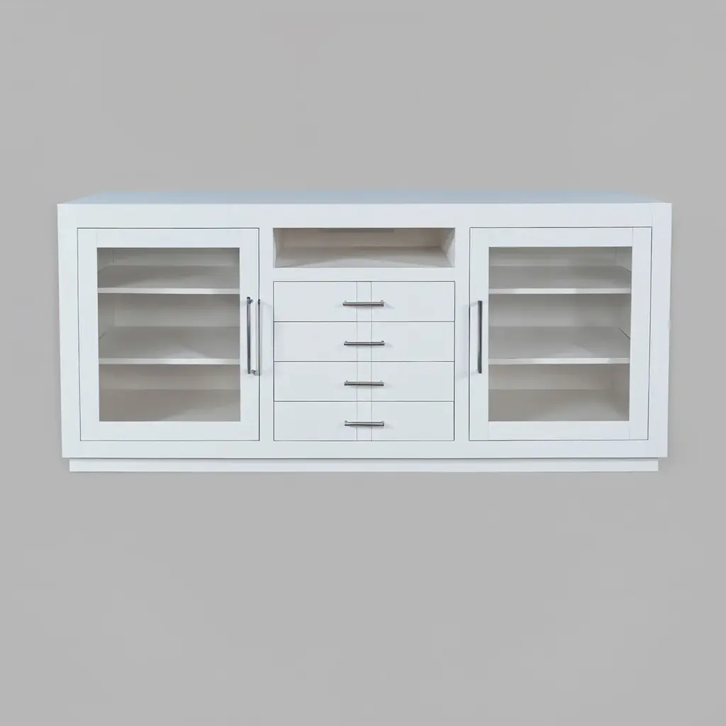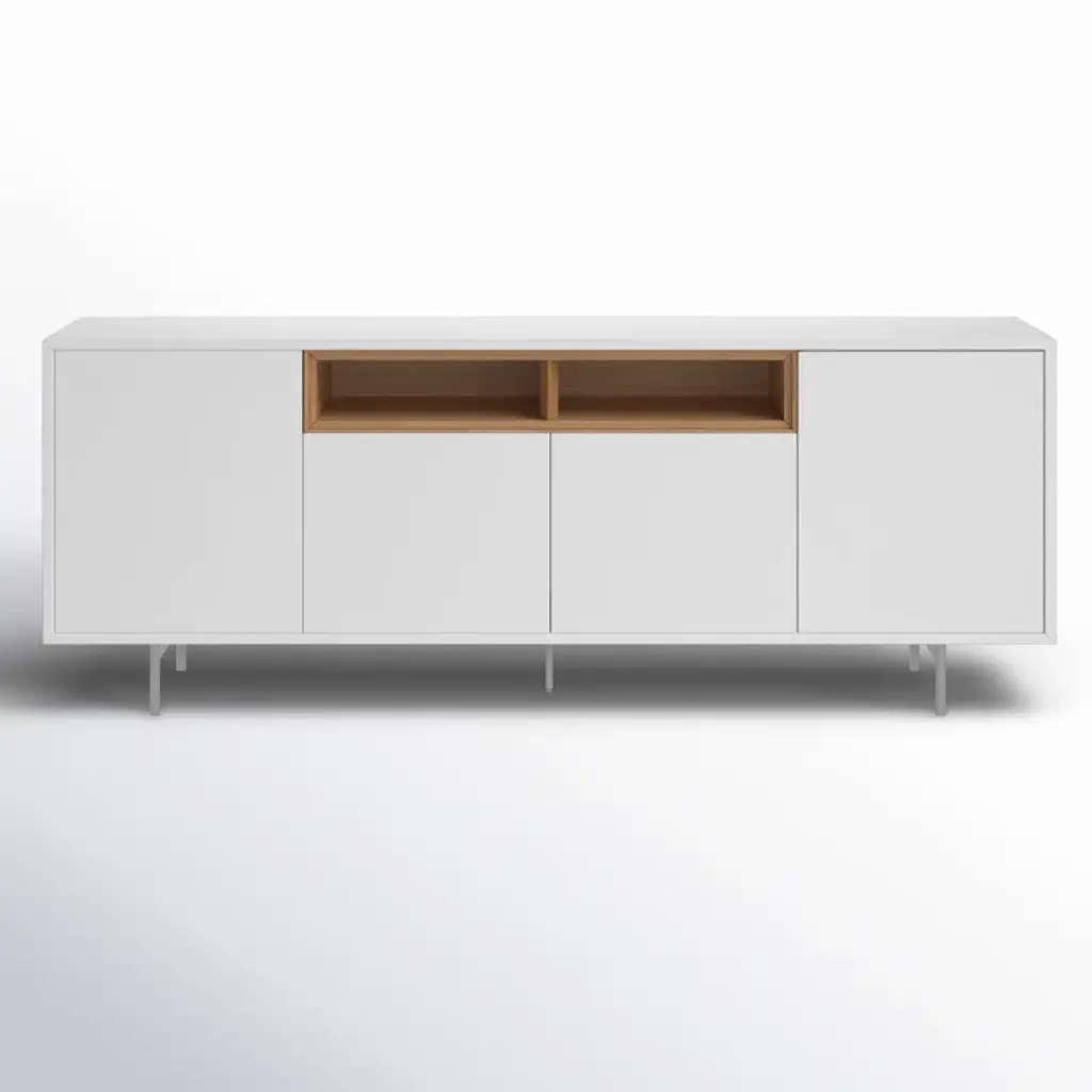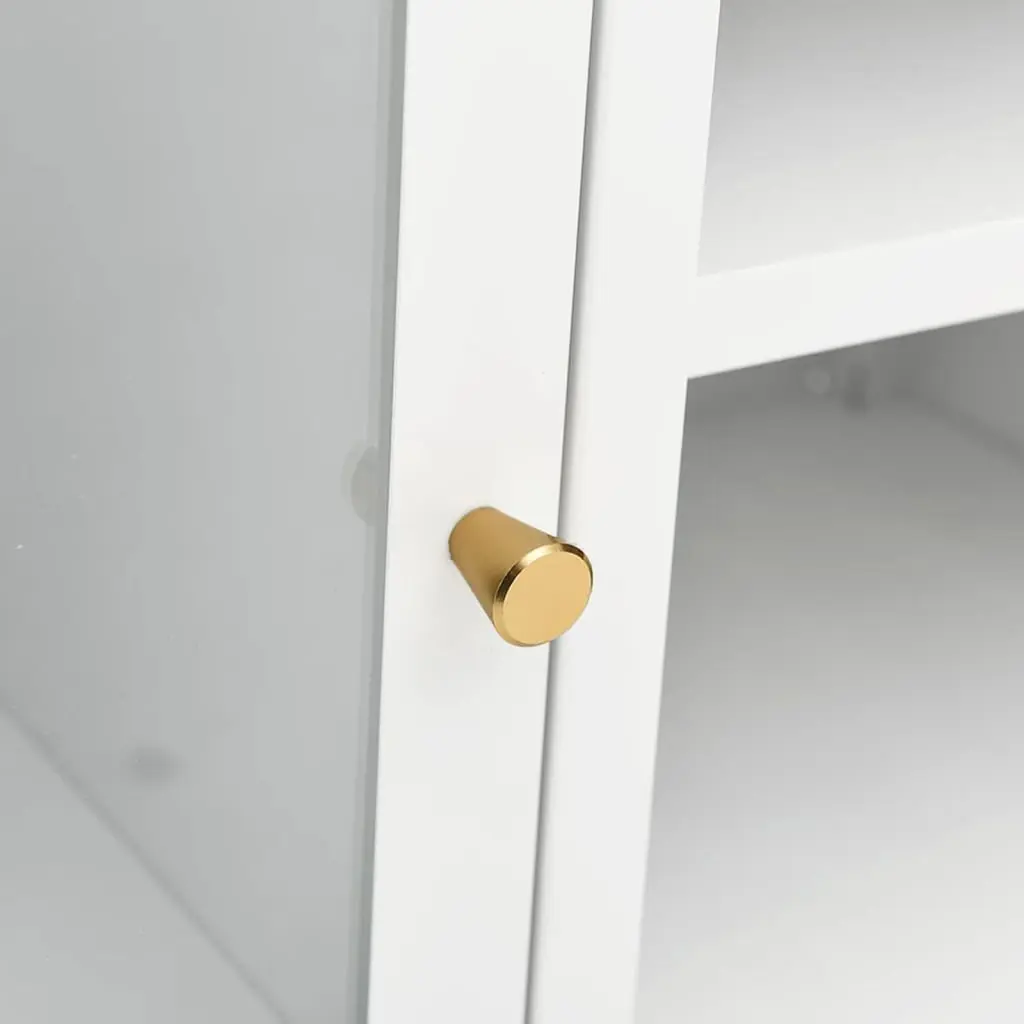 This stylish TV cabinet, featuring a sleek and classic design, makes a perfect decorative as well as practical addition to your existing decor.Made of steel, the construction of this TV unit is sturdy and durable, ensuring years of service. The TV unit features a compartment in the glass door and open shelves, offering ample storage space to store and display your books, magazines, DVDs, vases and other decorative items well organized and within reach. Also, the shelf can be installed at different level to change the storage space size. The feet can be adjusted easily at required height and help the cabinet keep stable. Additionally, it is also easy to clean with a damp cloth.