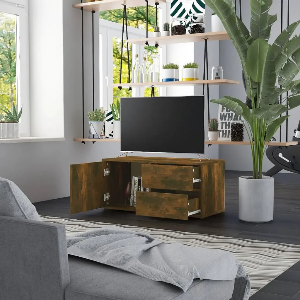 Vidaxl Tv Unit Smoked Oak Engineered Wood Small Tv Cabinet Rectangular
