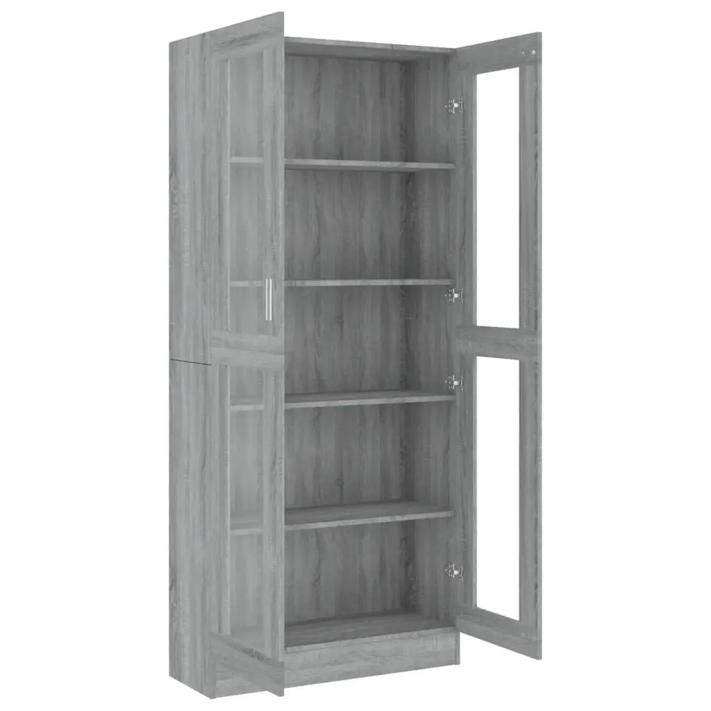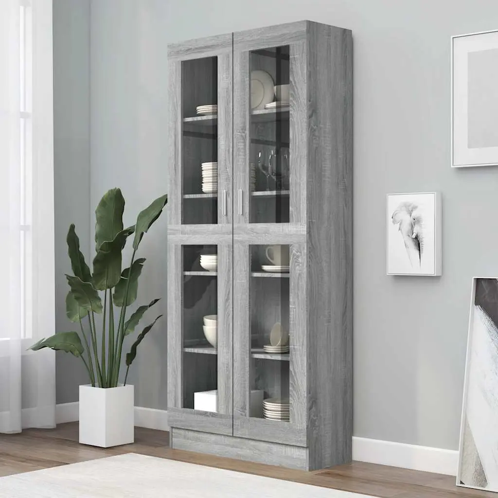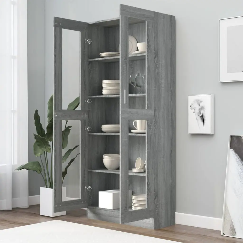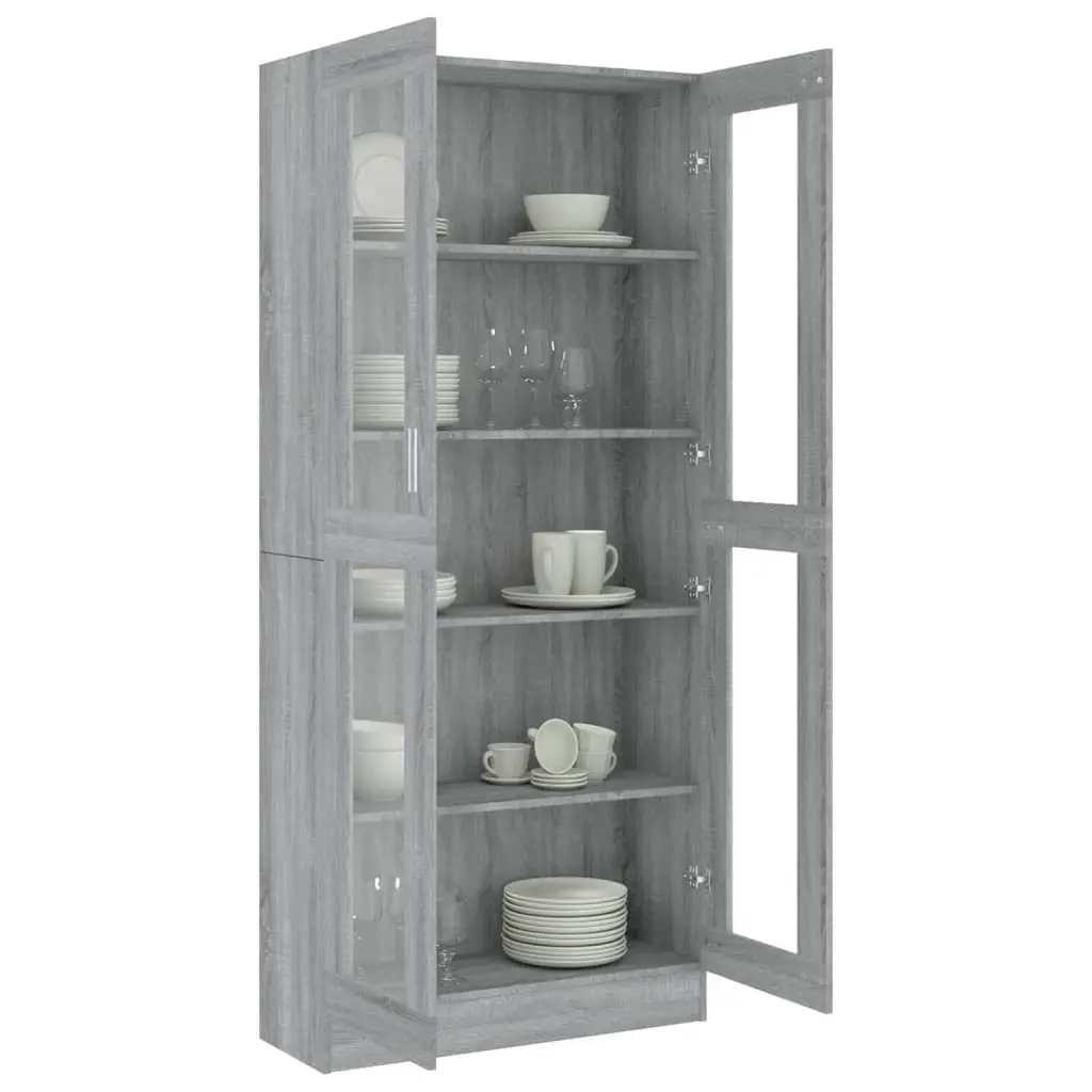 Vidaxl Vitrine Cabinet Gray Sonoma Engineered Wood, Glass Tall
