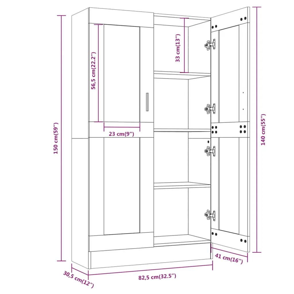 Vidaxl Vitrine Cabinet Smoked Oak 32.5"x12"x59.1" Engineered Wood