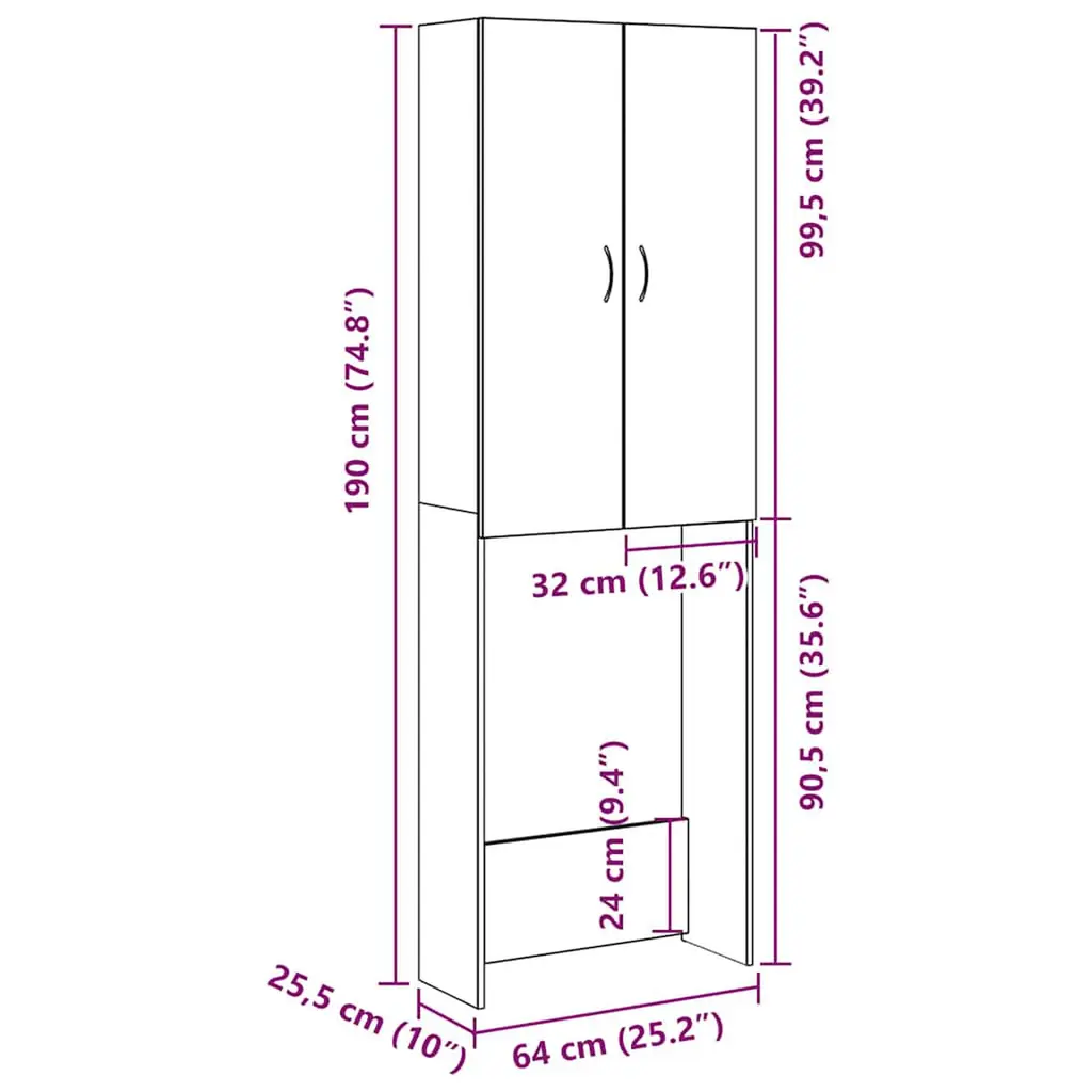 Vidaxl Washing Machine Cabinet Artisan Oak 25.2x10.0x74.8"