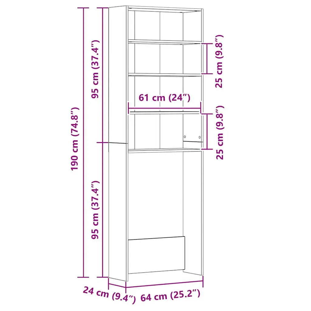 Vidaxl Washing Machine Cabinet Concrete Gray 25.2"x9.4"x74.8"