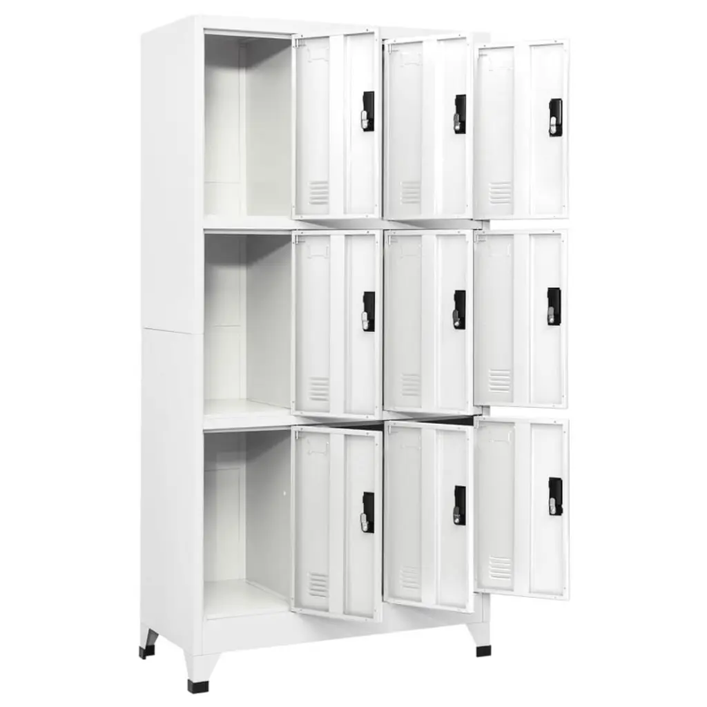Vidaxl White Locker Cabinet With 9 Compartments - Durable Steel Storage Organizer For Schools And Offices