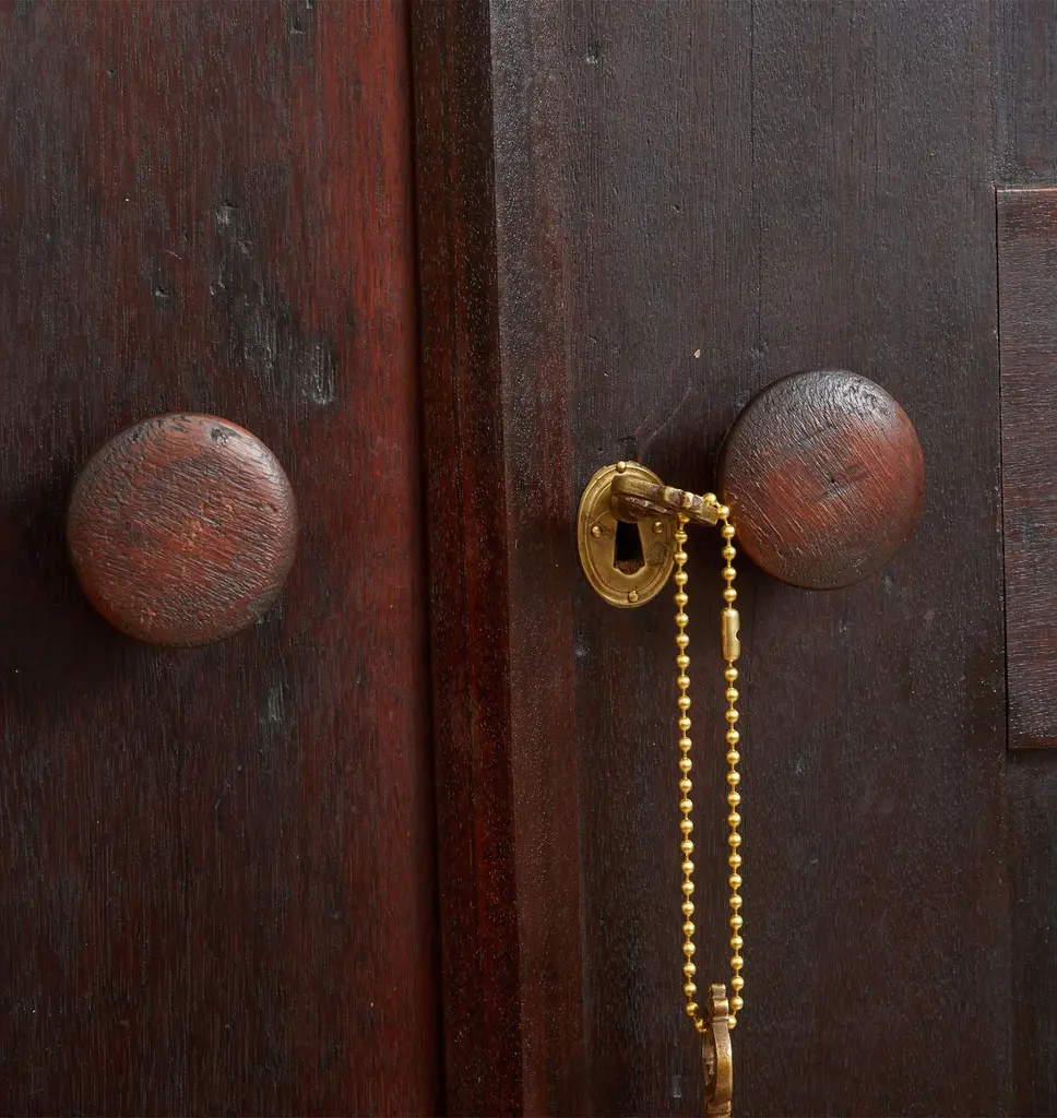 Vintage 2-Door Walnut Storage Cabinet With Keyed Lock