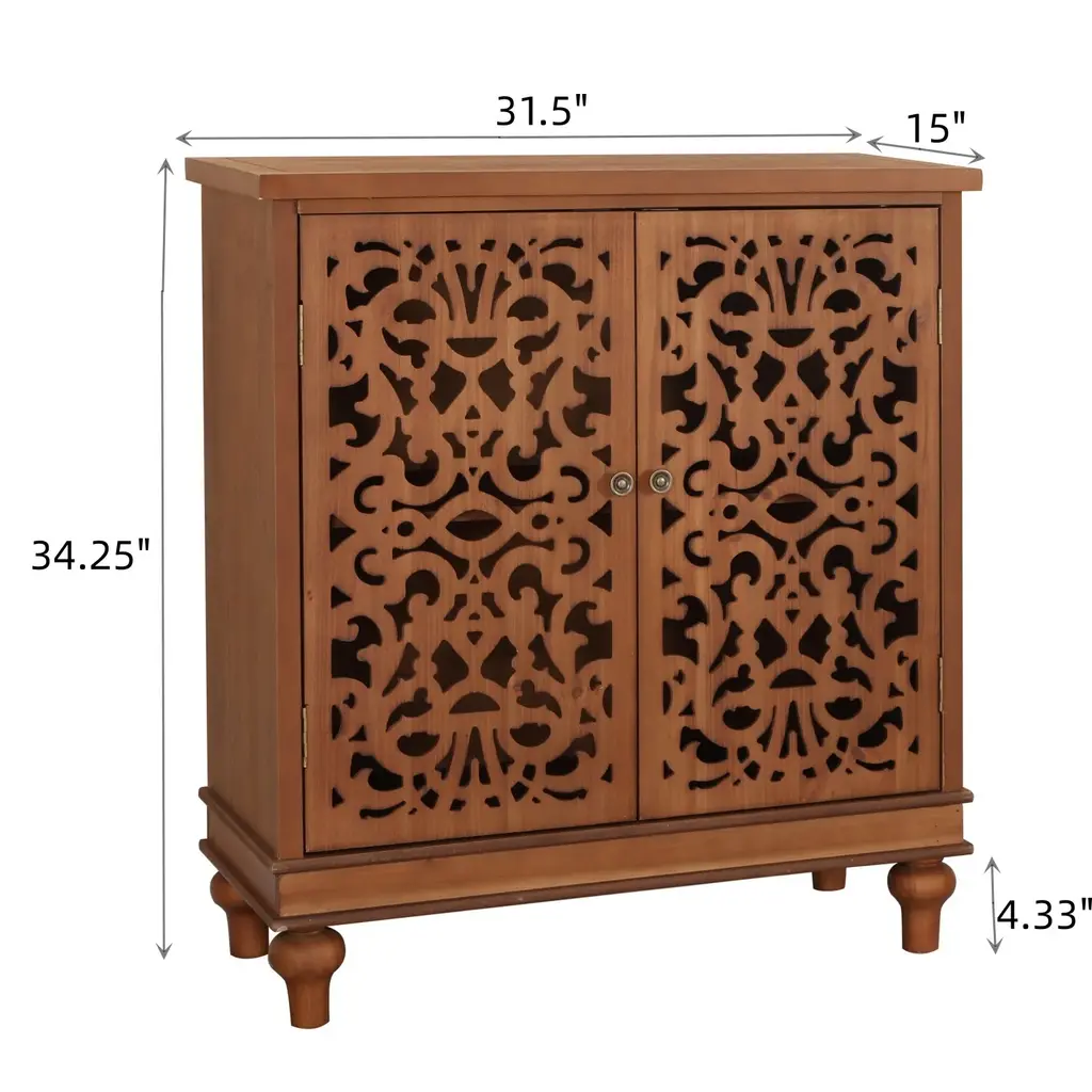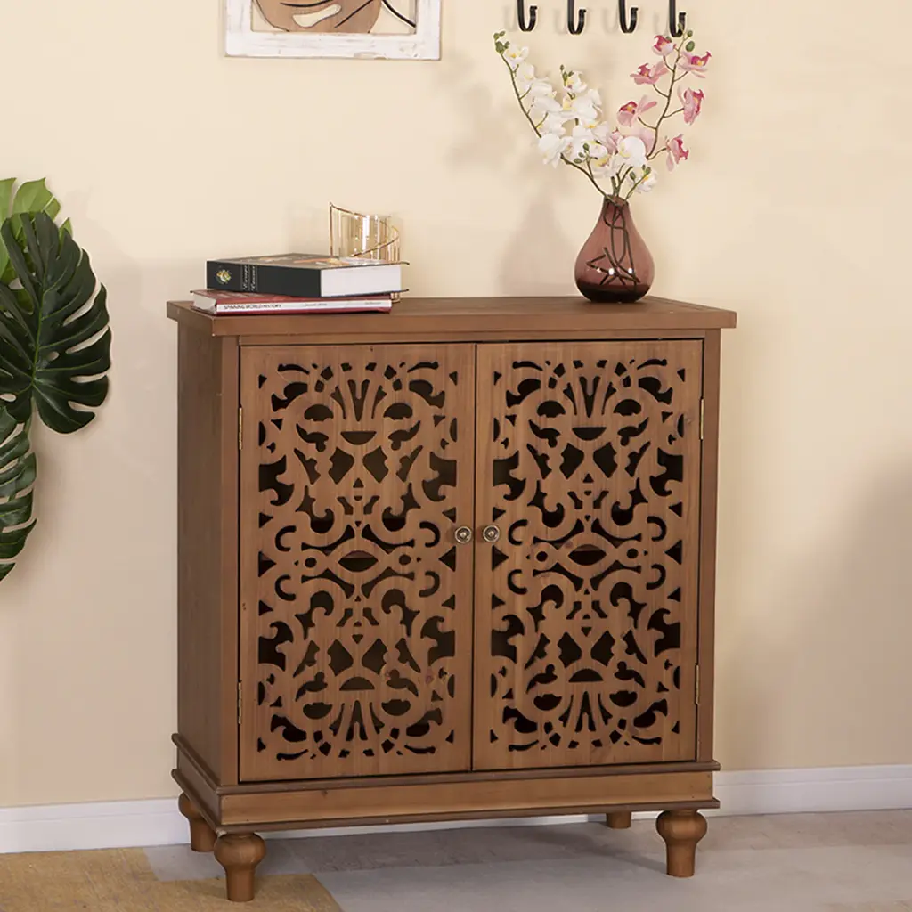 Vintage & Chic Hollow-Carved Accent Cabinet-Mfstudio