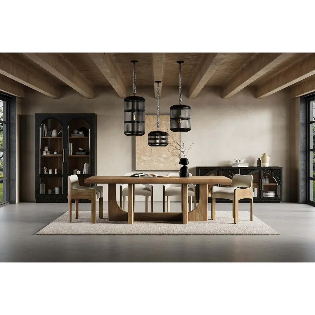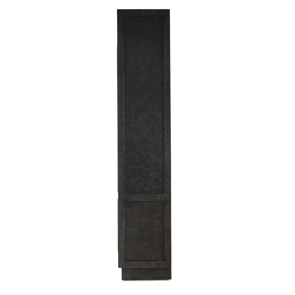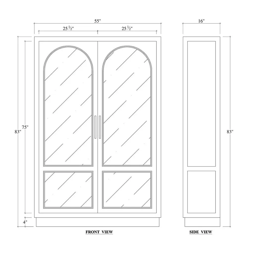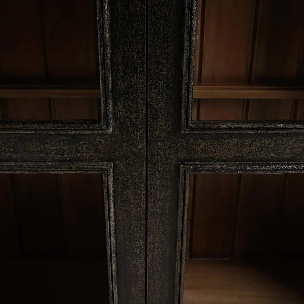 Finished in a vintage black and featuring a charming straw wash interior. This cabinet serves as a striking focal point in any room, offering a sophisticated touch with its classic design. The arched glass doors provide the perfect stage to showcase your favorite collectibles, books, or decorative pieces, while the doors open to reveal ample storage space, ensuring all your treasures have a home.Dimensions: 55" W x 16" D x 83" HCustom finish options are also available. Contact us to learn more.
