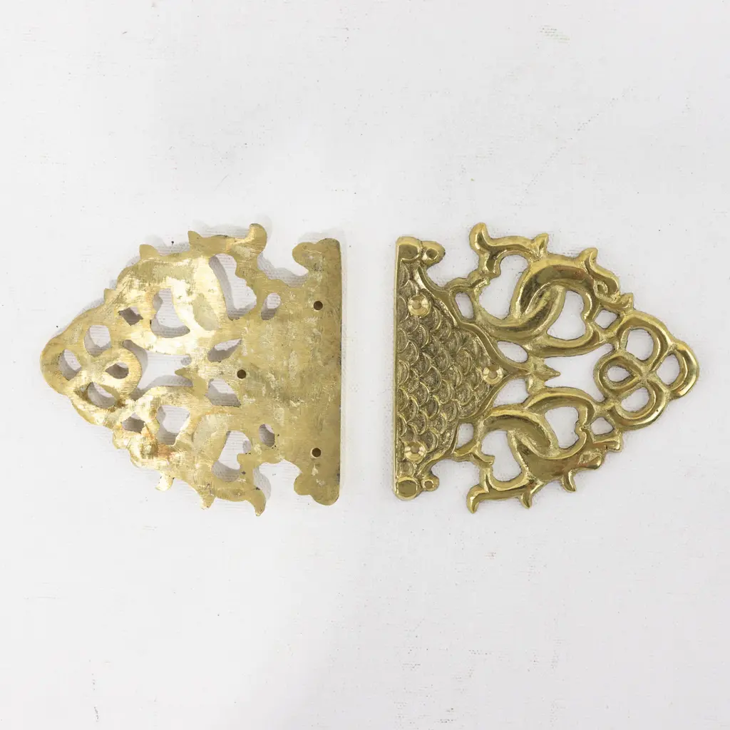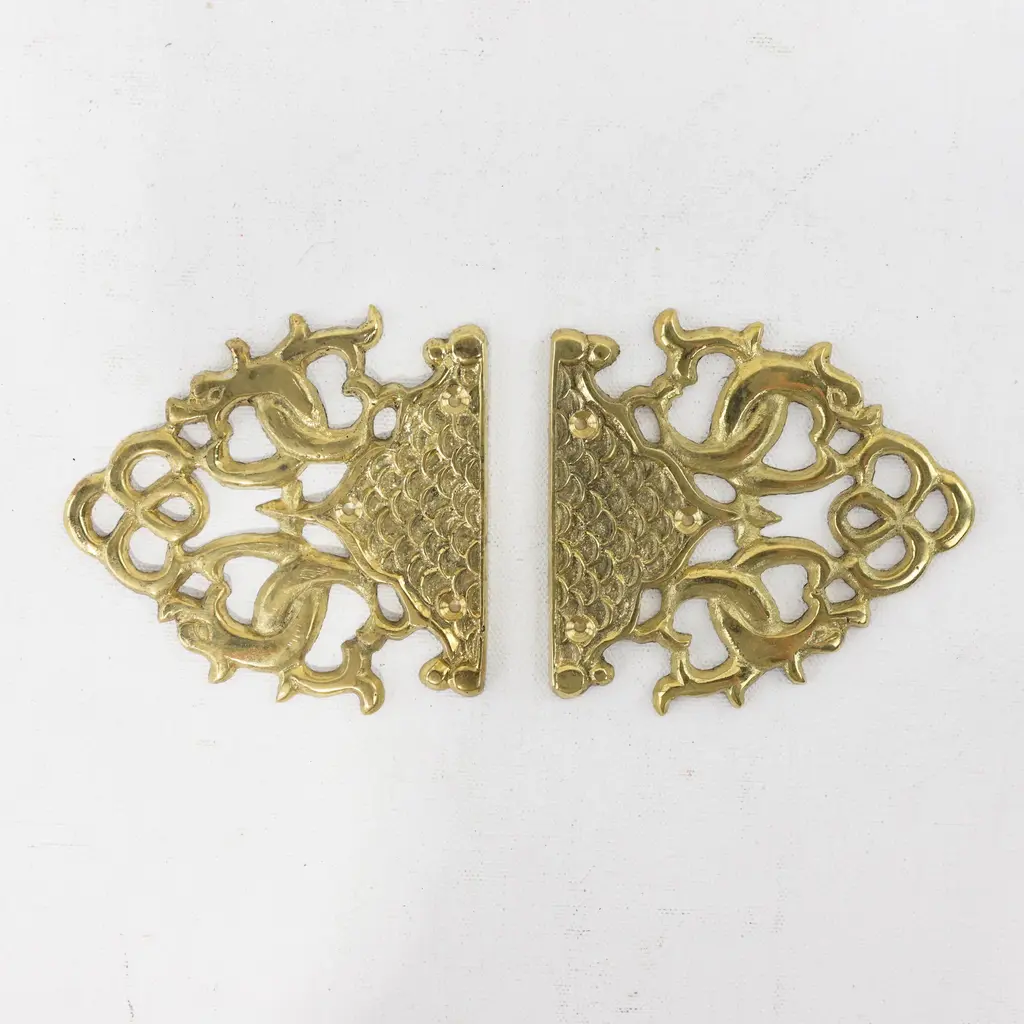 Vintage Brass Hollow Chinoiseries Fish Leaping Over The Dragon Gate Pattern Cabinet Door Decorative Panel