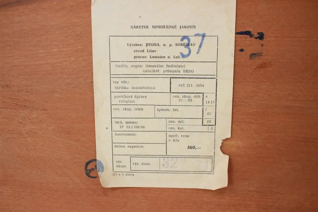 - Made in Czechoslovakia- Made of wood, veneer- Good, original condition- Label: Furniture of first class quality.