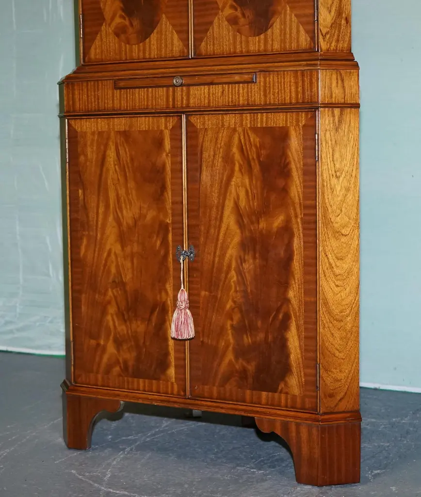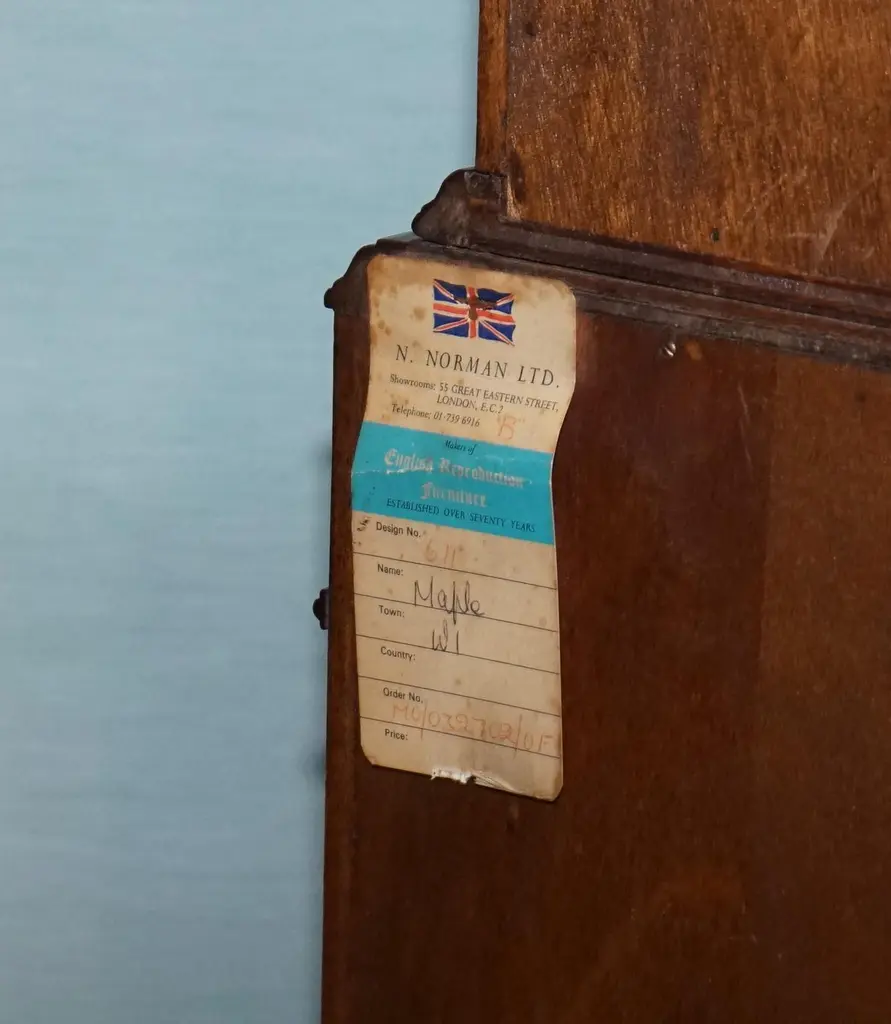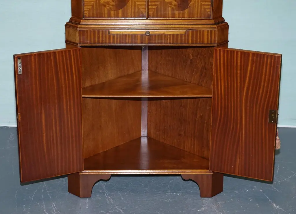 Antiques of LondonThis elegant corner cabinet by N. Norman Ltd, a renowned London maker of fine English reproduction furniture, exudes timeless sophistication. Crafted in the mid-20th century, it combines traditional design with high-quality craftsmanship.Please carefully examine the pictures to see the condition before purchasing, as they form part of the description. If you have any questions, please don't hesitate to message us. MeasurementsHeight - 159.5cmWidth - 76cmDepth - 47cm Bottom section shelf 1Height - 32cmWidth - 69cmDepth - 38cmVery bottomHeight - 36cmWidth - 71cmDepth - 39cm Top section 1Height - 20cmWidth - 60cmDepth - 26.5cm2Height - 23cm3Height - 23cm Depth - 34cmJust so you know, all measurements are taken to the widest point of the item. Please don't hesitate to ask us if you need any other measures.