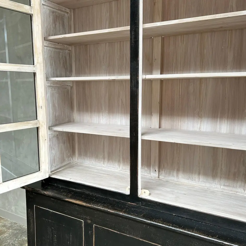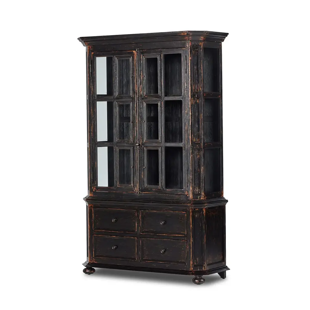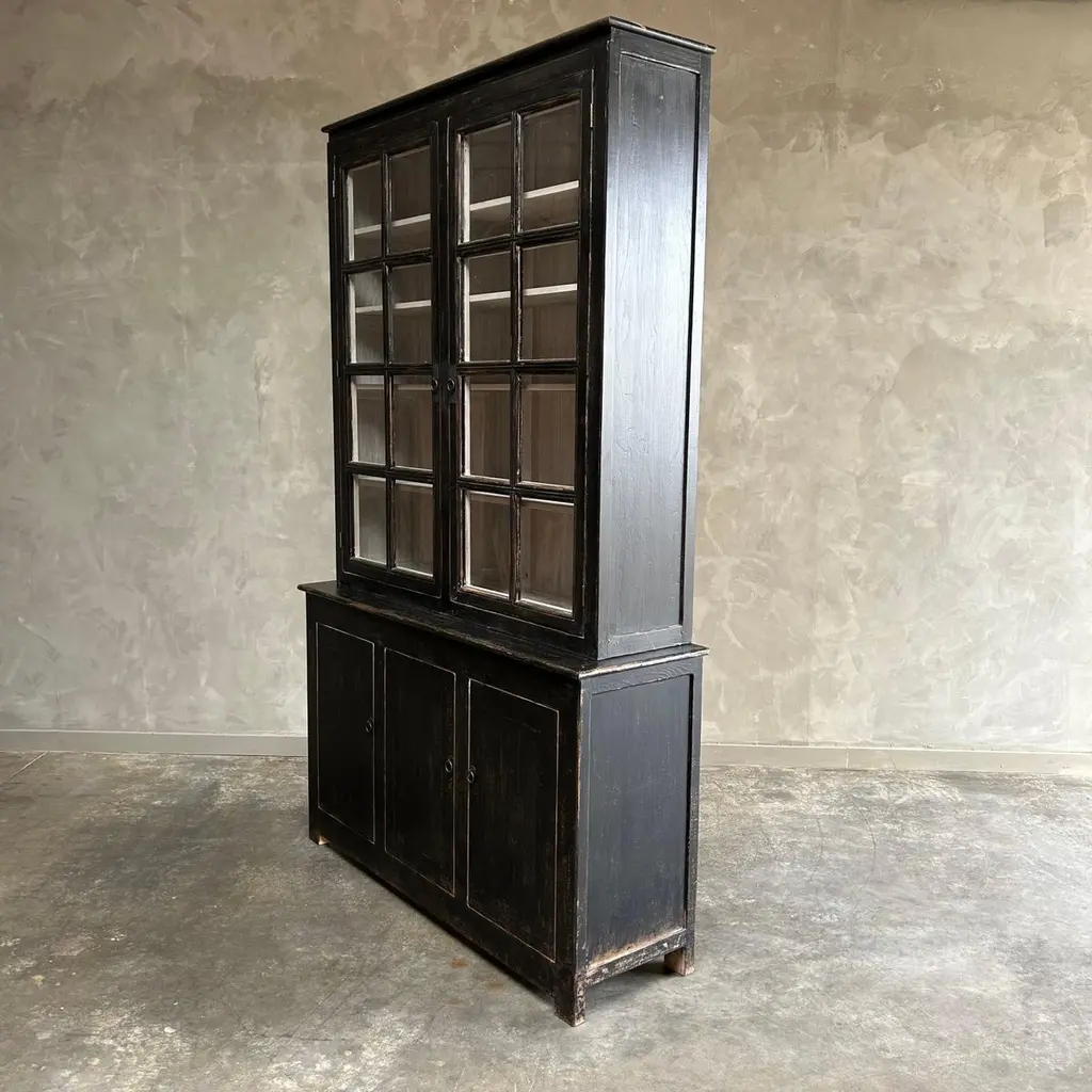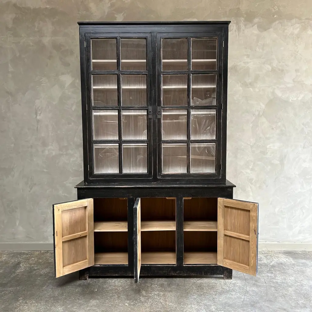 Vintage Style Reclaimed Wood Hutch In Distressed Black Finish