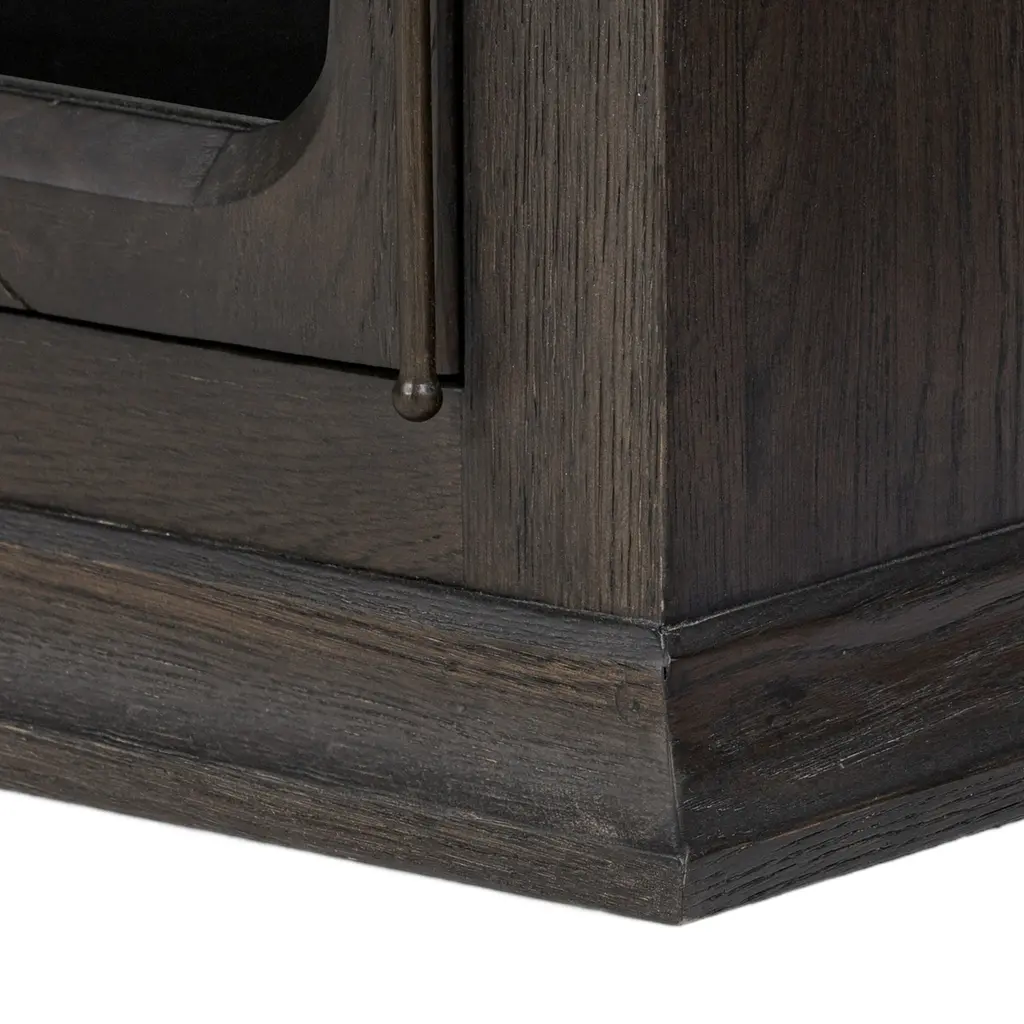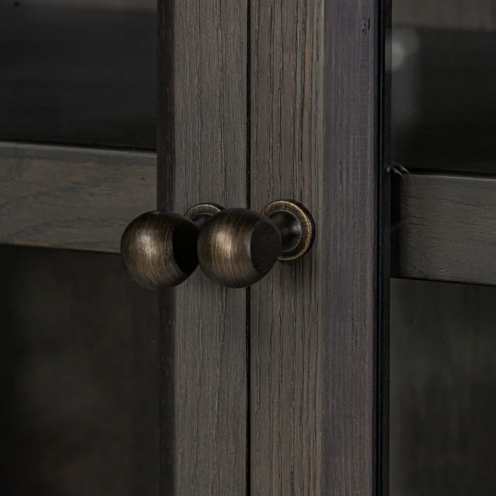 Introduce the timeless charm of a vintage find into your home with the Viremont Cabinet. This exquisite piece features cabinetry with softened mullions and rounded glass panels, complemented by aged bronze barrel hinges and finial detailing. Designed to offer generous storage and display options, the Viremont Cabinet empowers you to create a space that truly tells your story.