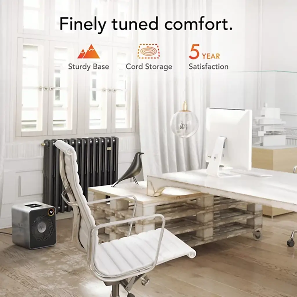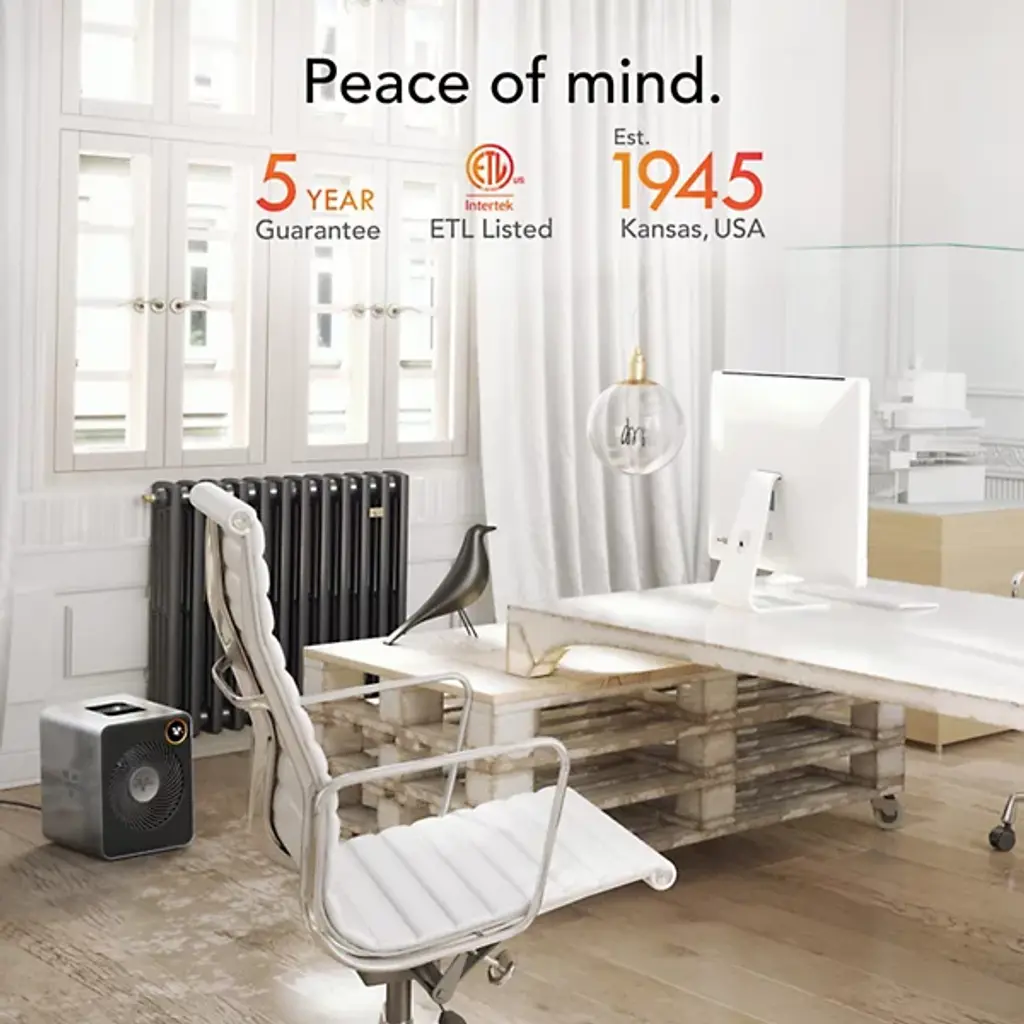 The VMHi600 Whole Room Metal Space Heater from Vornado offers the perfect balance of comfort, efficiency, and style. It has a sleek stainless steel case and metal cabinet and enhances any room’s decor. With dual LED displays for cross-room viewing, remote control, Energy Sync for optimal efficiency, and discreet cord storage, this heater is as functional as it is stylish. Auto-climate control and Vornado’s signature Vortex Whole-Room Heat Circulation ensure maximum comfort, while the metal inlet grille protects dust and fingers. It’s a top-tier heating solution with elevated performance.