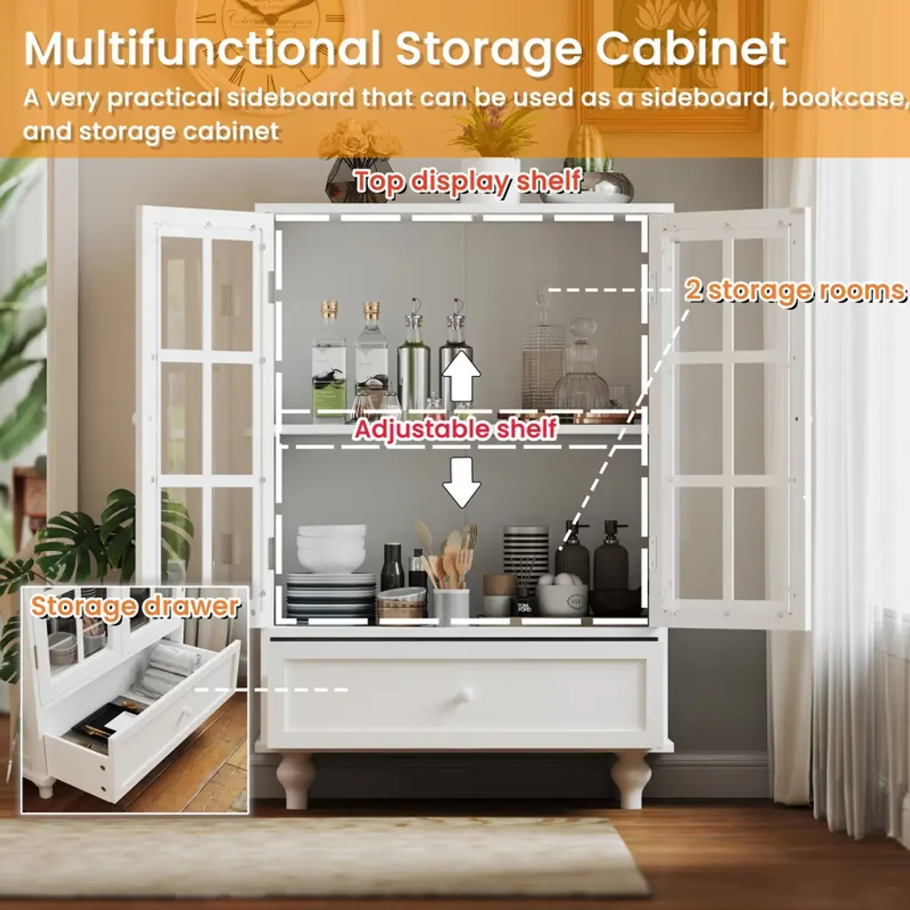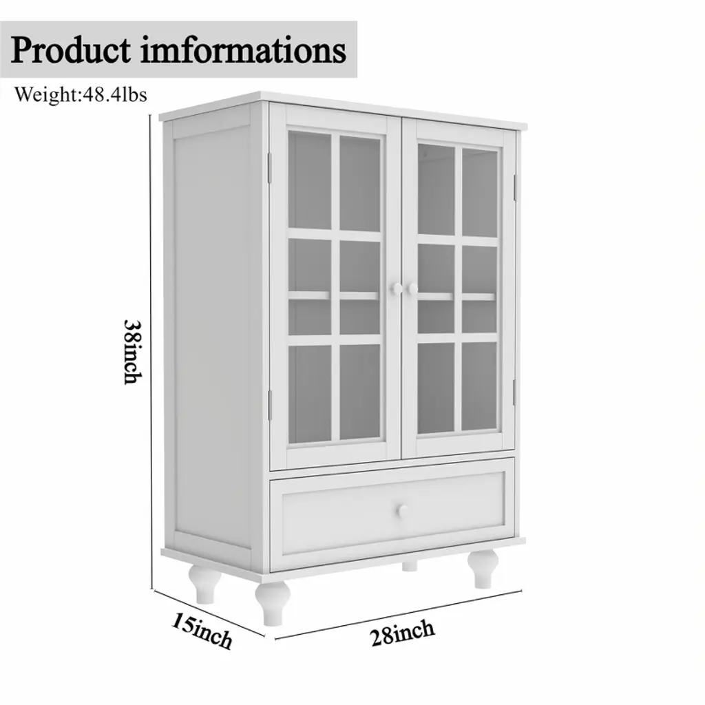 Elevate your home organization with our Modern Minimalist White Storage Cabinet. This stylish sideboard features double glass doors and a spacious drawer, making it perfect for displaying your favorite collections or storing kitchen essentials. Crafted from high-quality MDF, it resists moisture and deformation, ensuring long-lasting durability. The sleek design complements any living room, dining area, or hallway, while the easy assembly process allows you to set it up in just 1-2 hours.