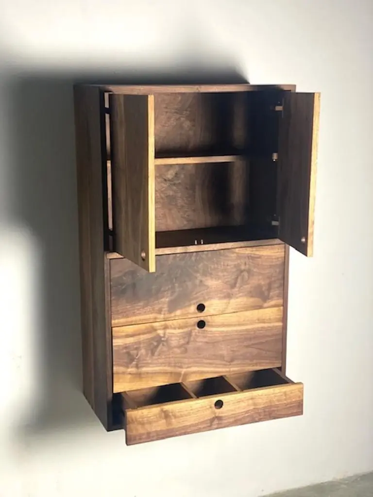 Hand-crafted walnut cabinet by Woodworker Michael Rozell. New.
