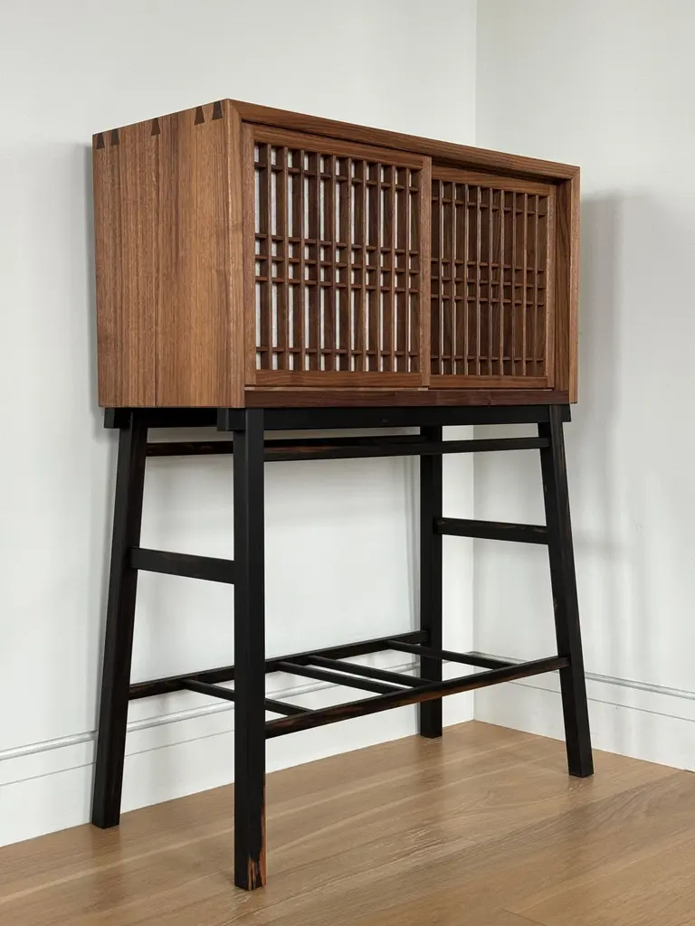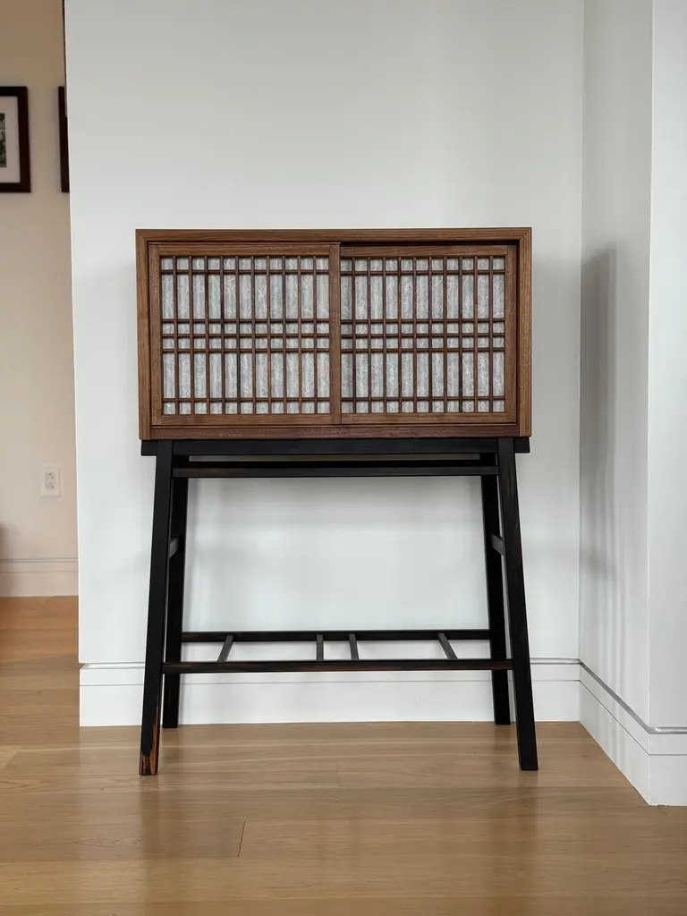 Walnut Hall Cabinet With Shoji Doors