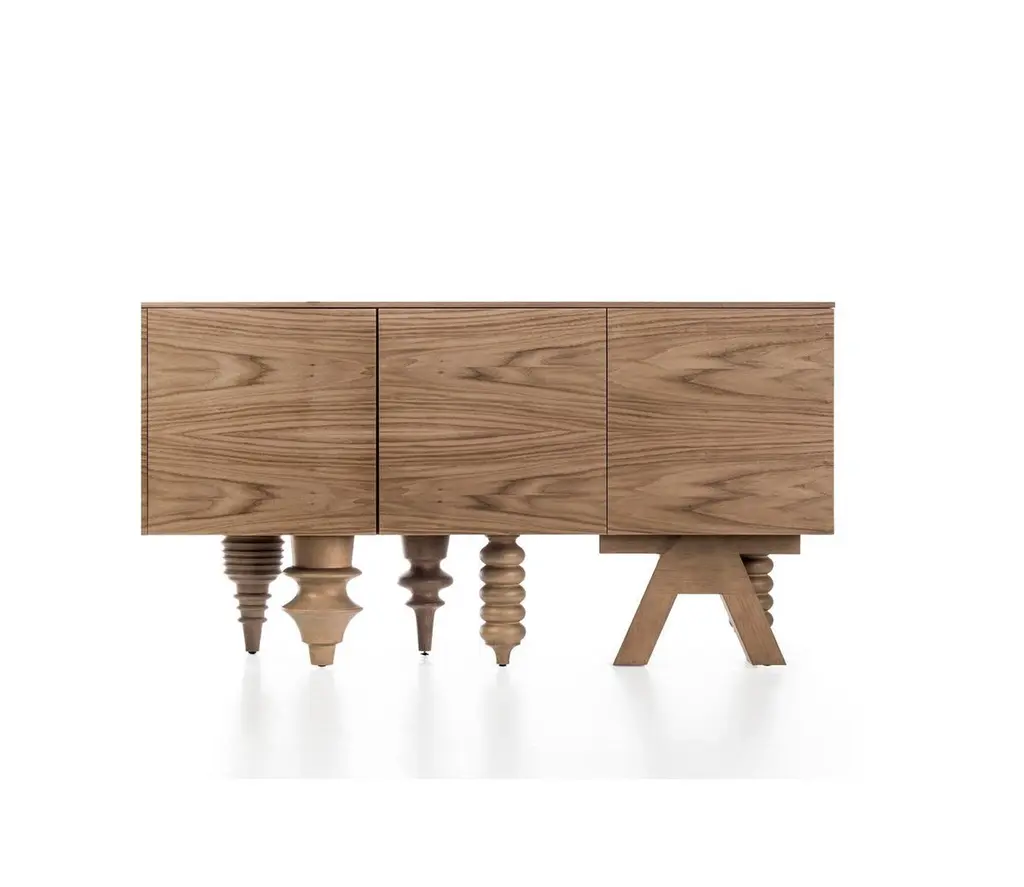 Walnut 1.5 meter Multileg cabinet by Jaime HayonDimensions: D 50 x W 150 x H 80 cm Materials: container and frontal panels in 19mm MDF and shelves in 25mm MDF. Inside, back panel, doors, and tops in varnished or nature effect walnut. Legs in turned alderwood.Also available in other sizes and in gloss and marble finishes.A modular multipurpose and multi-legged furniture. It is available with a dozen different designs inspired by different styles. It allows various configurations and is available with optional accessories. With all the collaborations between Jaime Hayon and BD, this is undoubtedly the bestselling piece. We developed it within a few weeks before the Milano Furniture Fair in 2006, where the Showtime Collection was presented for the first time which was a complete success from the very first day. Twelve distinct legs give character to this cabinet - the first to enter our catalog.In 1972, a group of young architects and designers from Barcelona created BD with the aim of producing and marketing furniture and other objects for our projects, with complete creative freedom and with a criterion that has turned out to be quite different from the norm at companies in the sector, regarding both the shape and function.