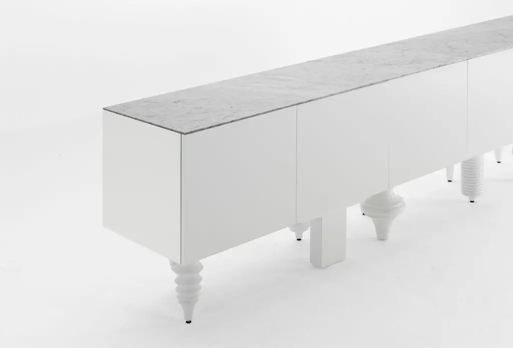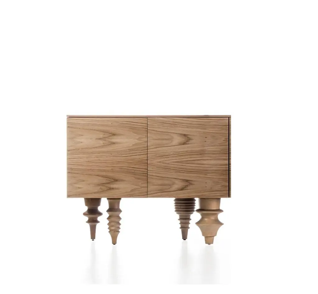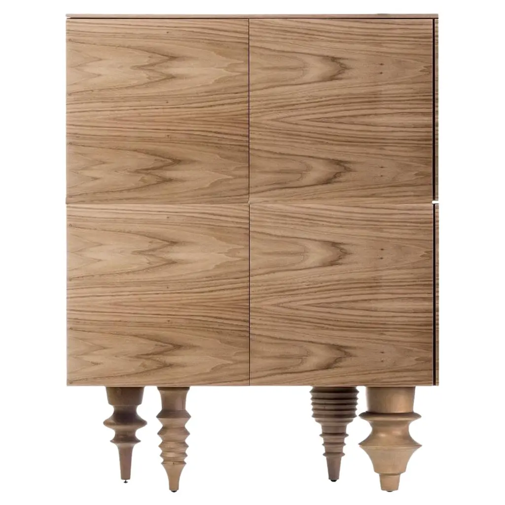 Walnut 1 meter Multileg Cabinet by Jaime HayonDimensions: D 50 x W 100 x H 80 cm Materials: container and frontal panels in 19mm MDF and shelves in 25mm MDF. The inside and back panel are matt-lacquered. Shiny lacquered doors. Tops in 10mm glass painted underneath. Legs in turned Alderwood and shiny lacquered.Also available in other sizes and in gloss and marble finishes. A modular multipurpose and multi-legged furniture. It is available with a dozen different designs inspired by different styles. It allows various configurations and is available with optional accessories. With all the collaborations between Jaime Hayon and BD, this is undoubtedly the bestselling piece. We developed it within a few weeks before the Milano Furniture Fair in 2006, where the Showtime Collection was presented for the first time which was a complete success from the very first day. Twelve distinct legs give character to this cabinet - the first to enter our catalog.In 1972, a group of young architects and designers from Barcelona created BD with the aim of producing and marketing furniture and other objects for our projects, with complete creative freedom and with a criterion that has turned out to be quite different from the norm at companies in the sector, regarding both the shape and function.