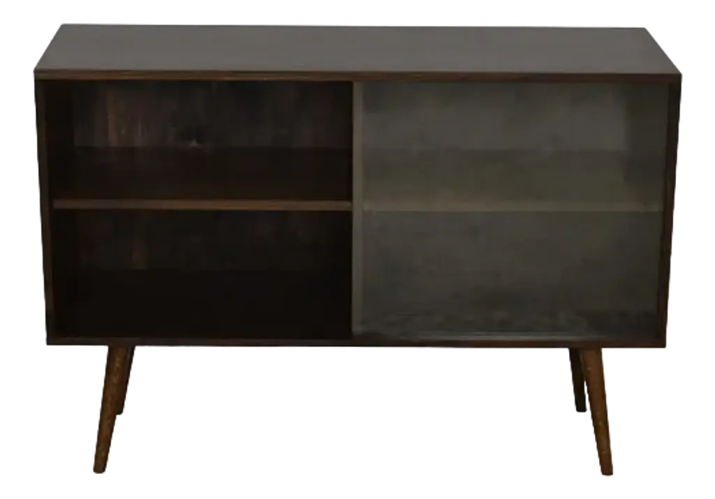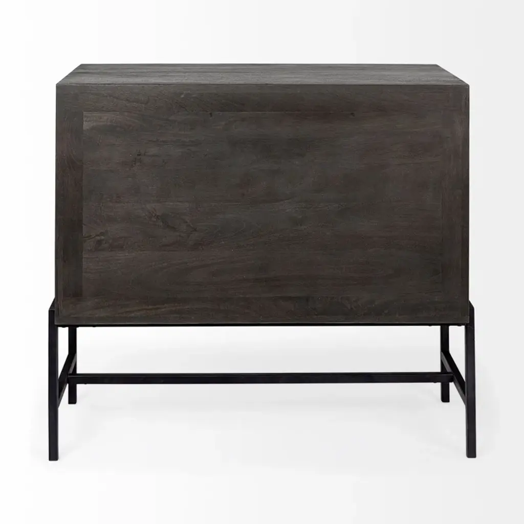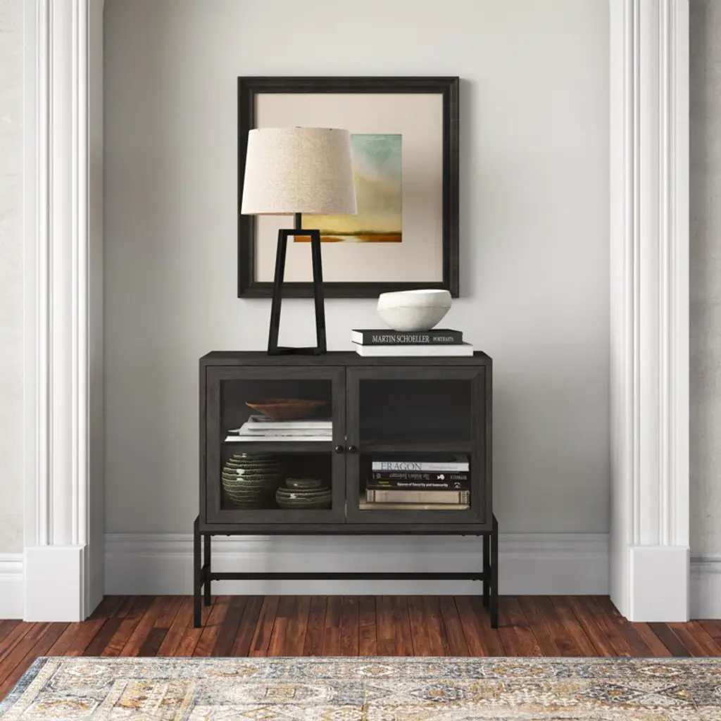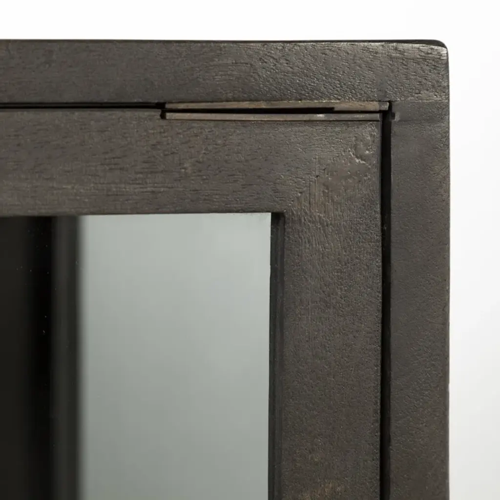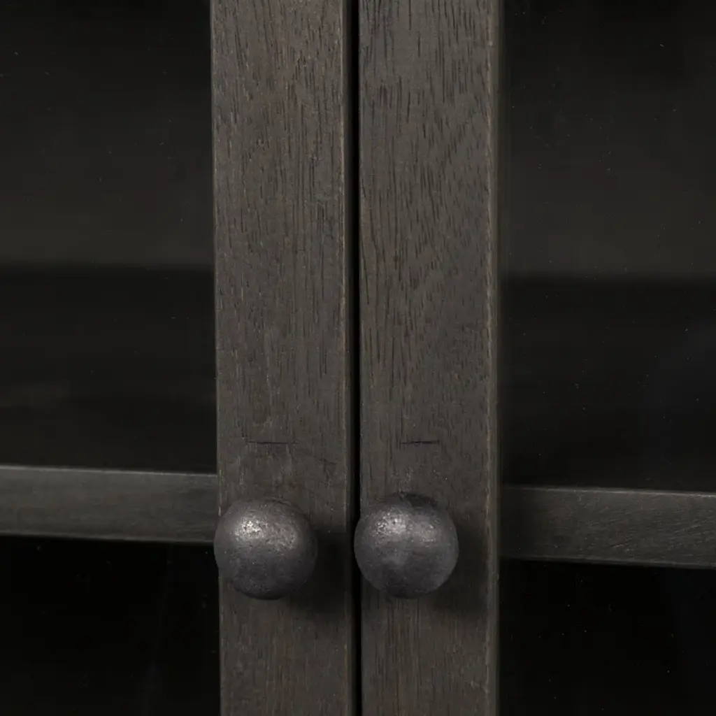 With its slim rectangular silhouette and clean lines, this accent cabinet is as visually appealing as it is functional. It's crafted from mango wood and sits on a four-legged solid iron base with cross bracing for added style and support. Up top, it's equipped with glass side panels and two clear, glass-lined doors. Inside, removable shelves offer ample storage space for everyday items, decorative objects, and anything else you want to show off while you stay organized. Plus, this accent cabinet easily comes together with only partial assembly.