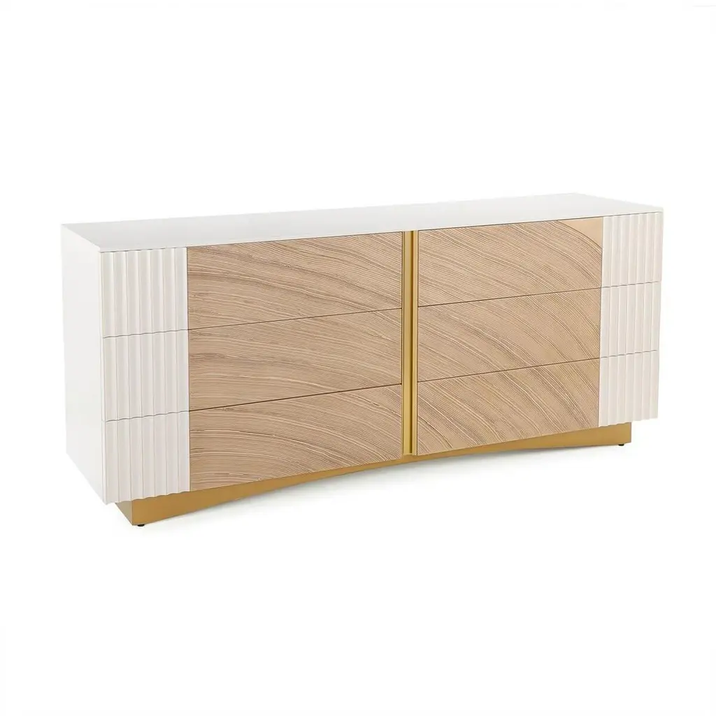 Masterful craftsmanship defines this suspended bathroom cabinet, where form meets function in a refined design. Featuring two push-pull doors, the ribbed canneté detailing adds texture and depth, complemented by gilded metal profiles for a touch of elegance. Crafted in polished white wood, it enhances modern bathrooms with a sleek aesthetic. Sink and tap not included with purchase, this piece offers discreet storage while serving as a sophisticated focal point in contemporary interiors.