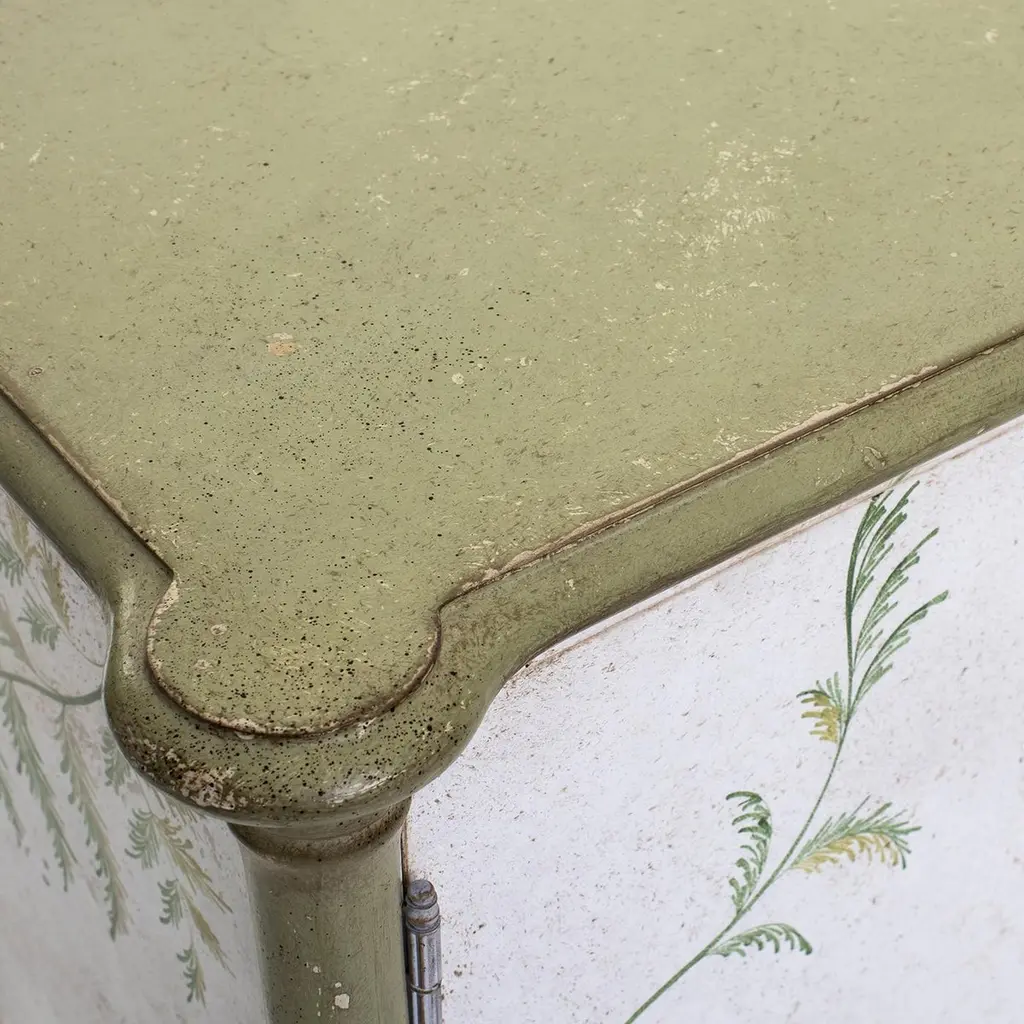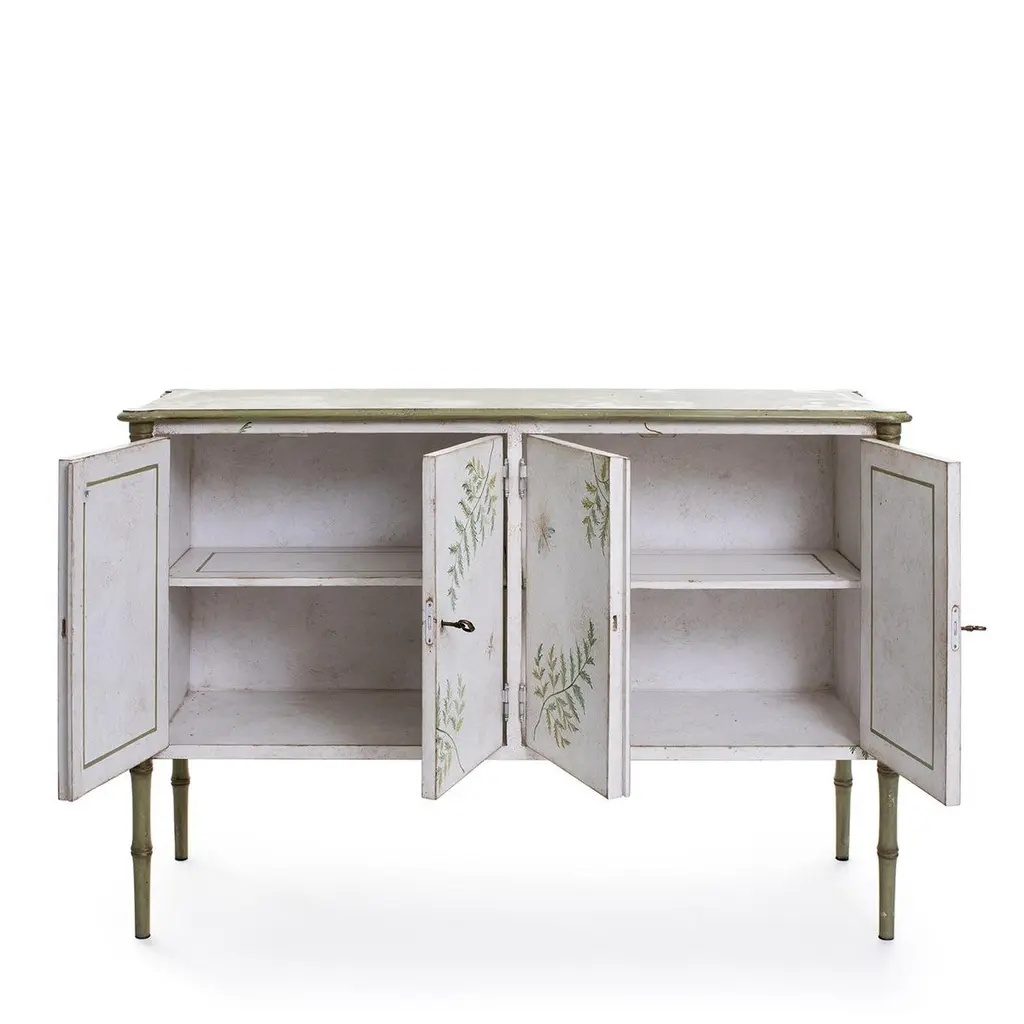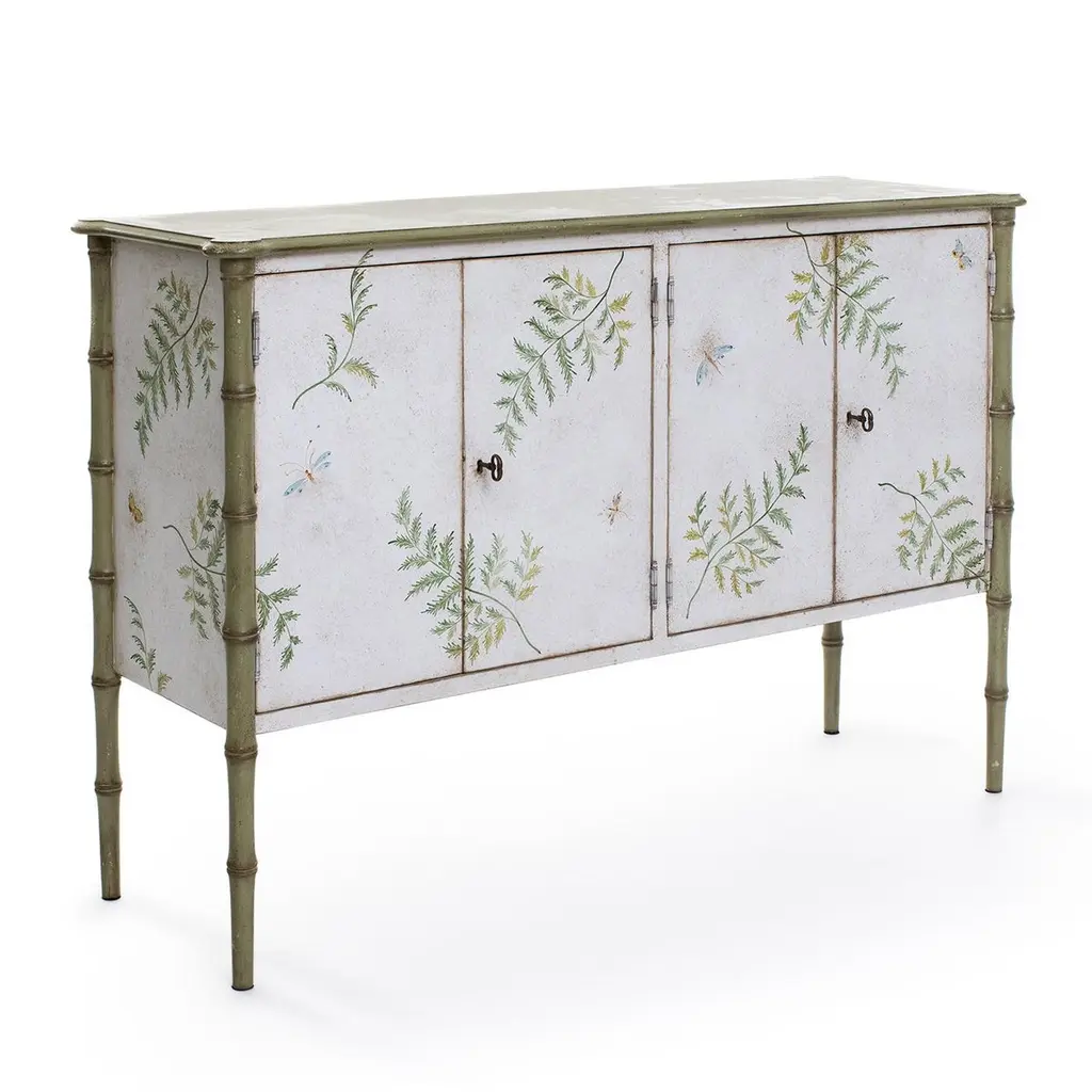 White-Green Lombardia Bamboo Cabinet With Ferns And Butterflies