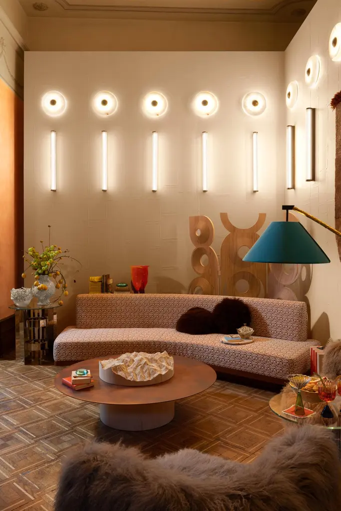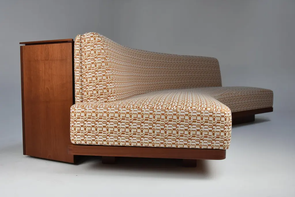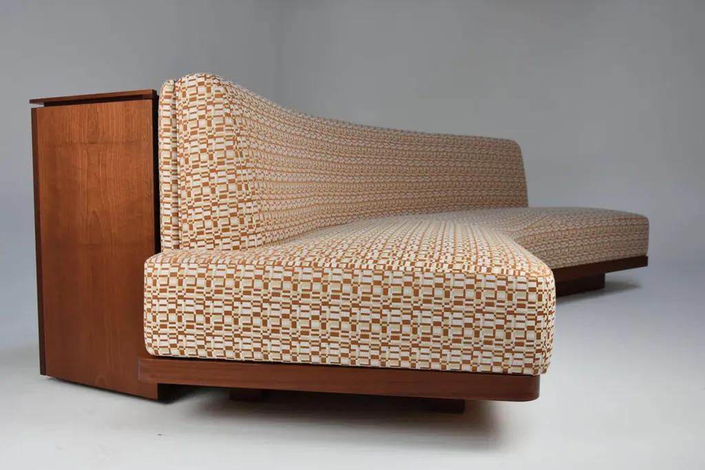 Wild Back Curve Sofa With Geometric Pattern Fabric And Back Cabinet In Wood