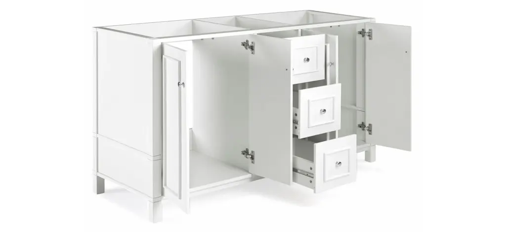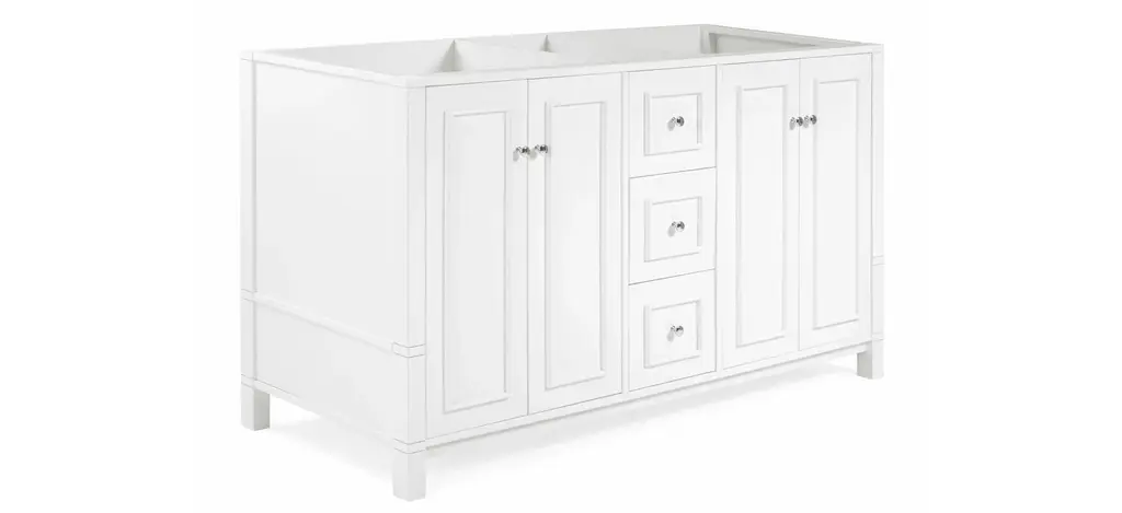 The Williamsburg 60" Vanity Cabinet is sure to be the focal point in your space, elevating your bathroom style with charm. Designed to complement any d_cor, and offers spacious storage for linens, toiletries, or other bath essentials.