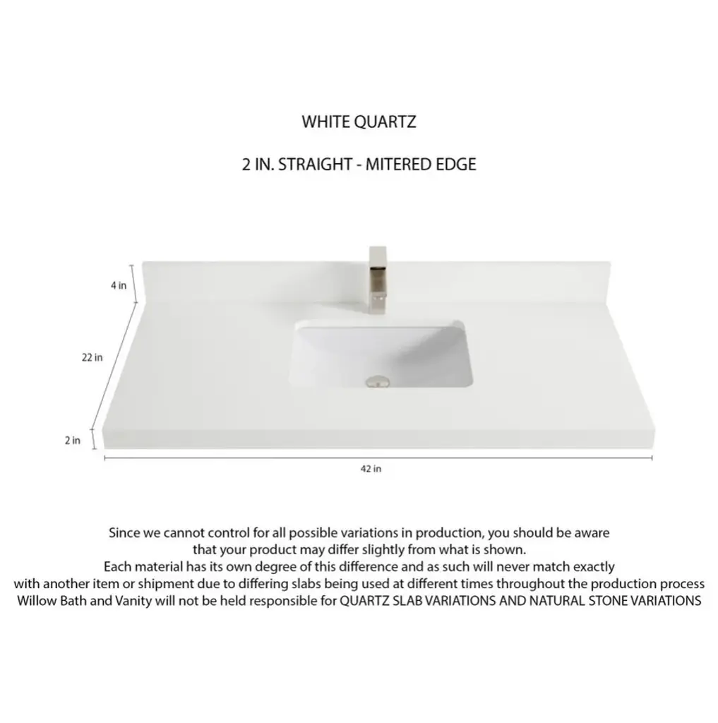 Willow Collections Parker Vanity, Gray, Pure White Quartz, 42"