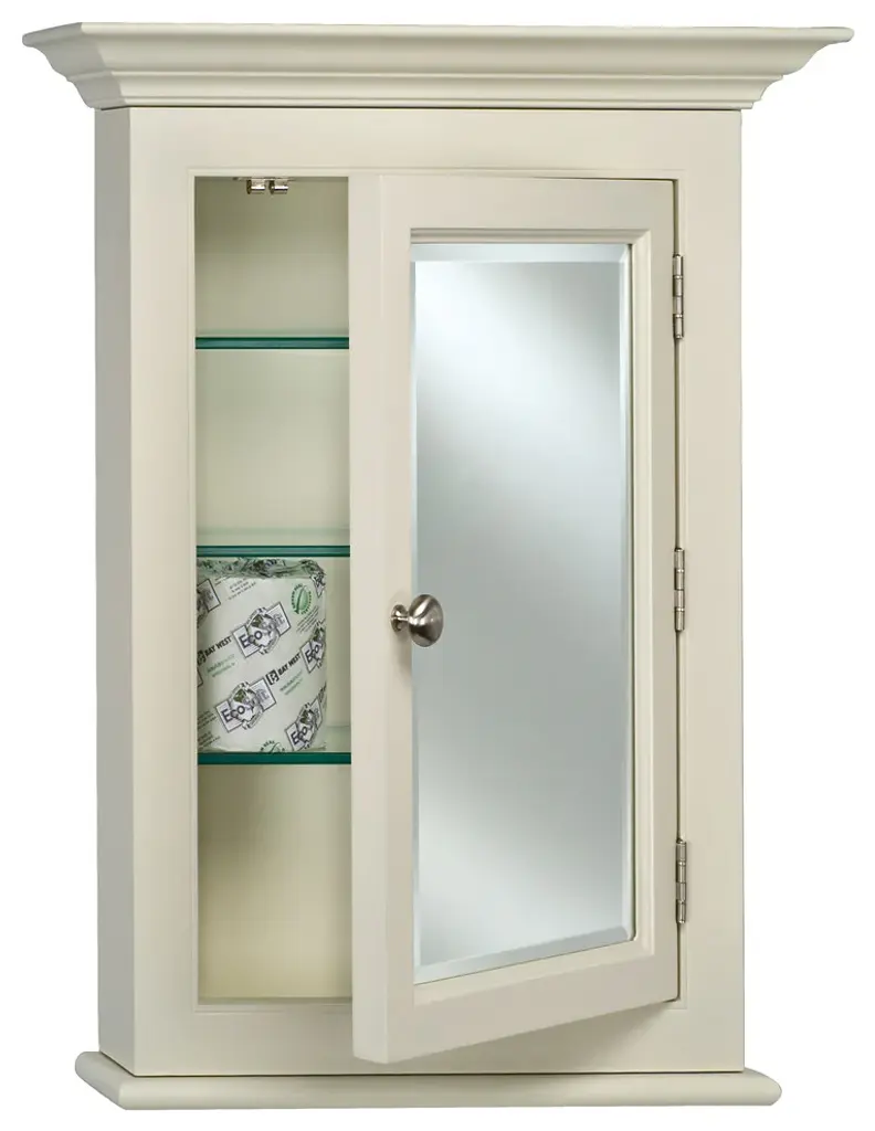 Wilshire I White Wood Medicine Cabinet With Crown Moulding, 25"x30"