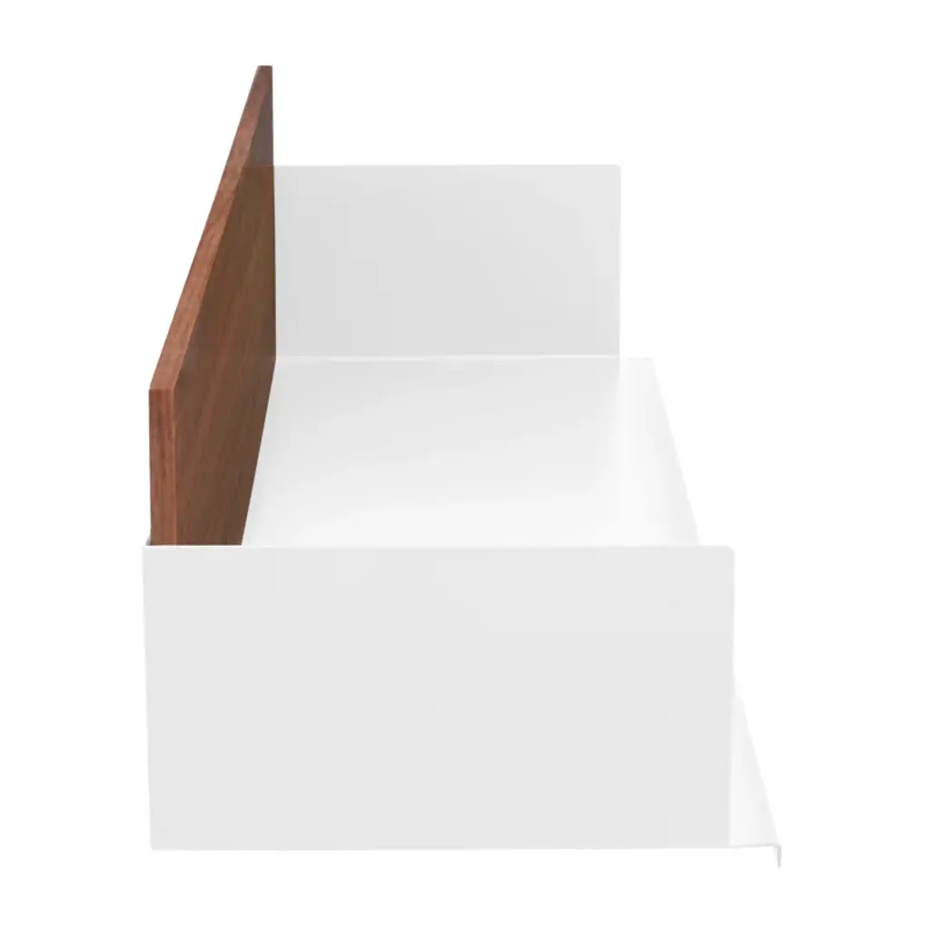 Let no wall go unexplored. Wall-mounted powder-coated steel shelf with a back panel turns any wall into an opportunity. Pair with companion cabinet and desk units to create a full-on storage masterpiece.