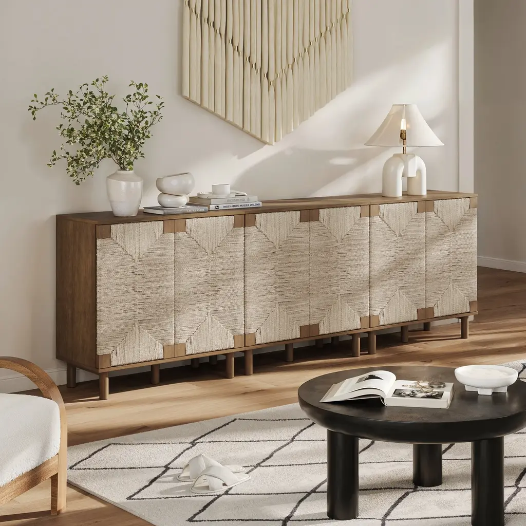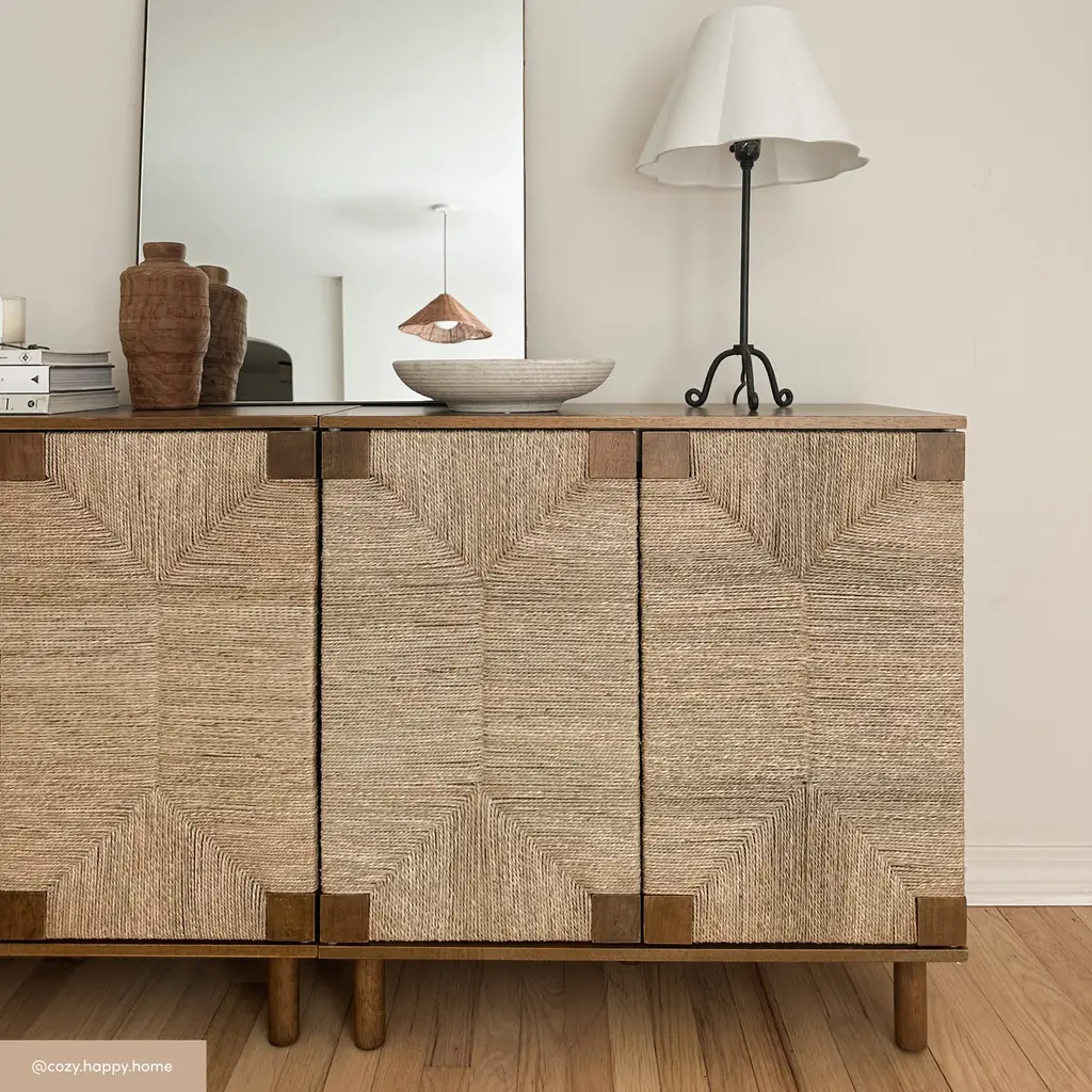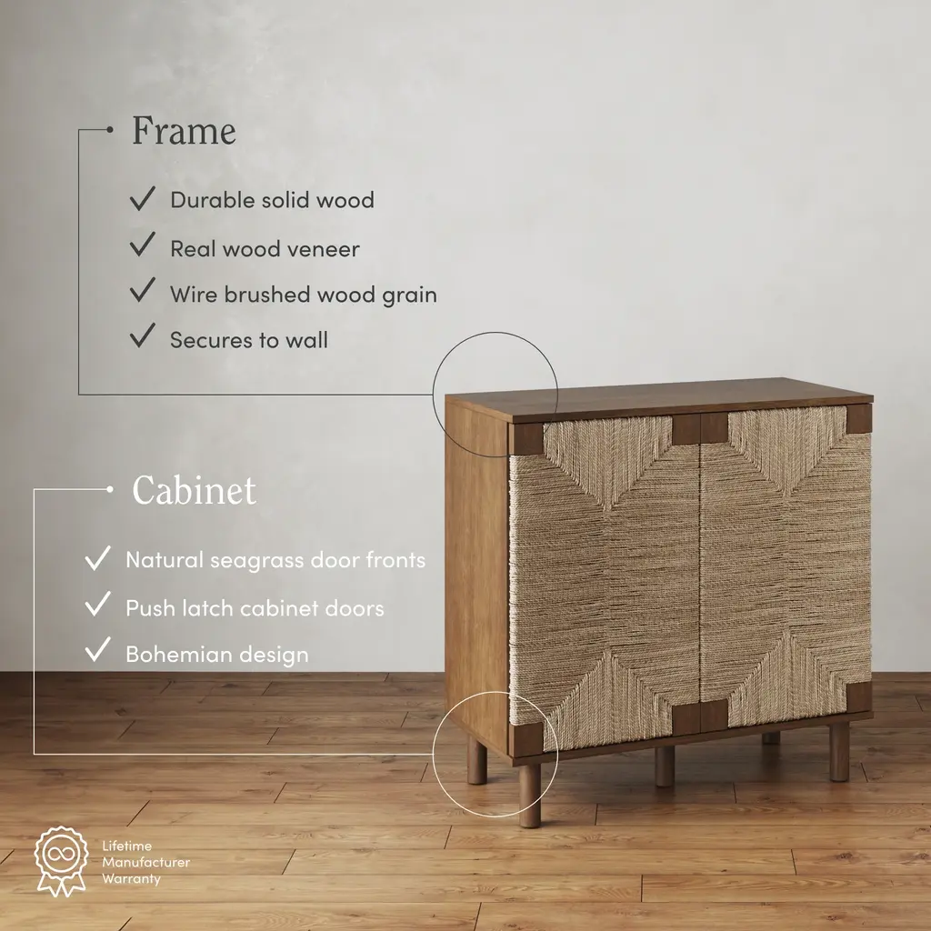 Say hello to Beacon, the perfect textured storage cabinet. A wire brushed brown finish is paired with push-latch natural seagrass cabinet doors for the an on-trend look that fits right in with any decor. An adjustable shelf gives you plenty of space to store records, books, or anything else you want to keep tidy and out of sight; or pair two side-by-side for extra storage. The handcrafted natural finish means some slight variations may occur.