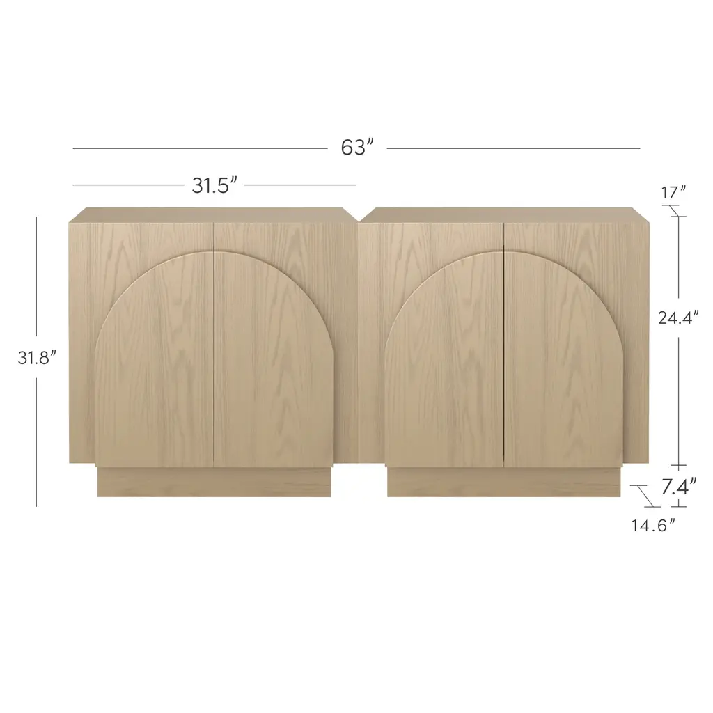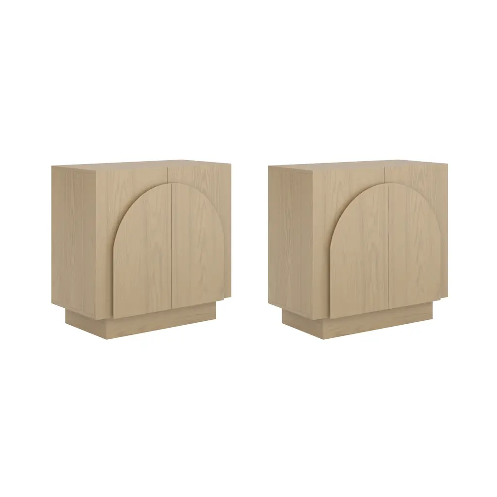 Wood Mid-Century Arched Storage Cabinet Gray Oak (Set Of 2)