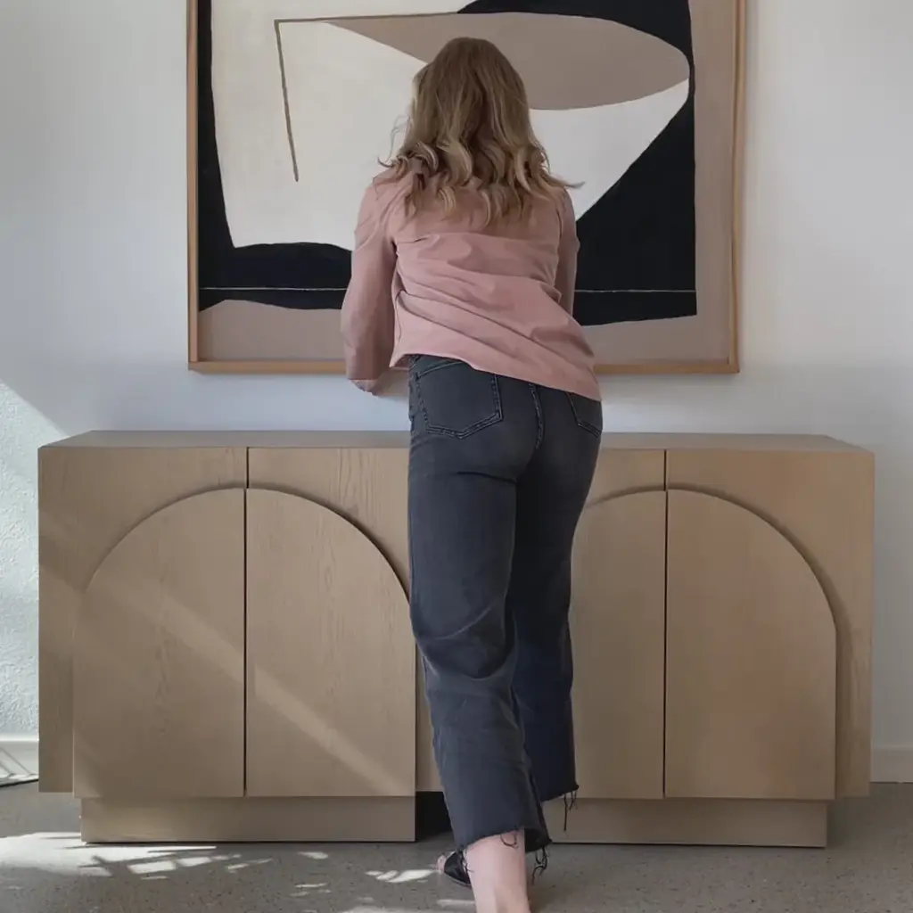 Meet our Iris Storage Cabinet! Inside, discover a handy closed storage shelf and ample storage space tucked behind its distinctive arched cabinet doors. The interior shelf is adjustable, allowing you to customize the storage to your needs.