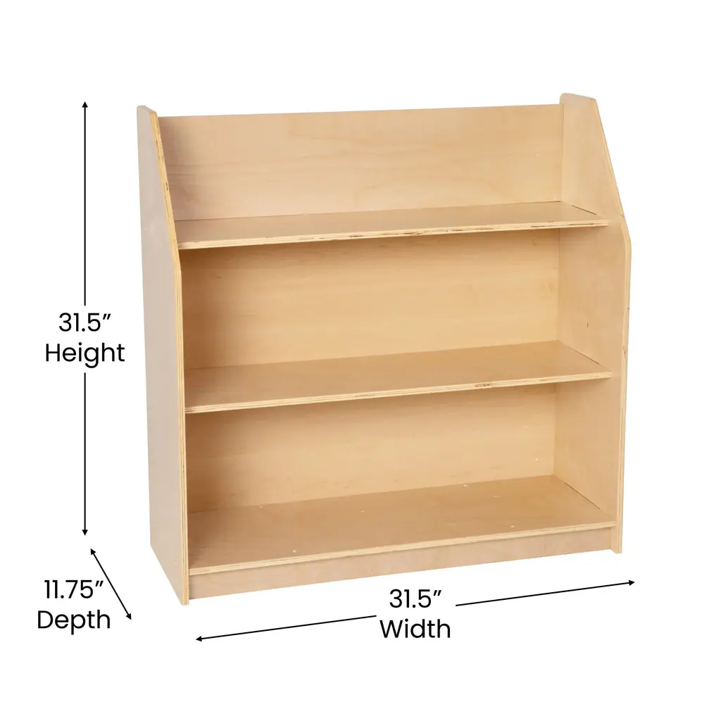 Wooden 3 Shelf Book Display With Safe, Kid Friendly Curved Edges - Commercial Grade For Daycare, Classroom Or Playroom Storage