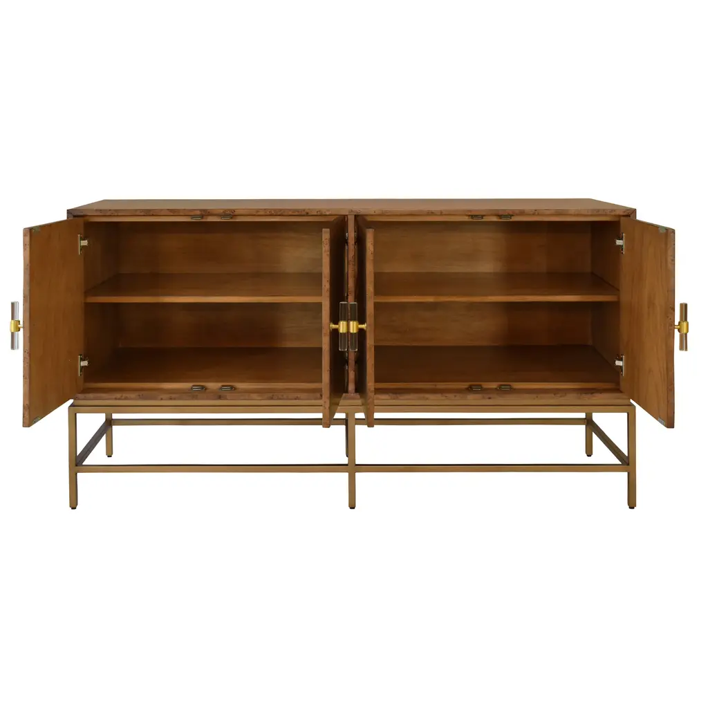 Looking for a versatile piece to liven up your home? The Worlds Away Ariel Buffet has it all—elegant design, ample storage, and a striking aesthetic. This four-door buffet is a perfect blend of form and function, with concealed storage behind each door to keep your living or dining area organized.