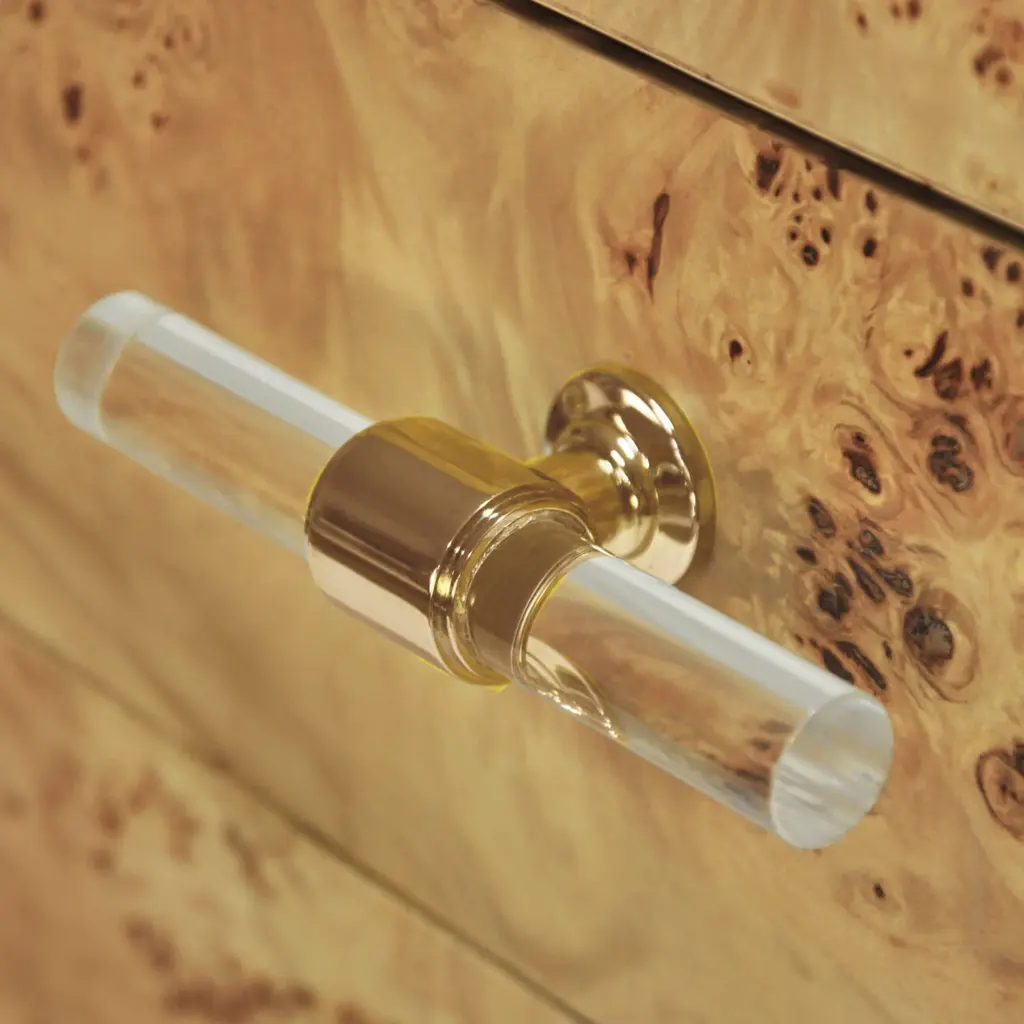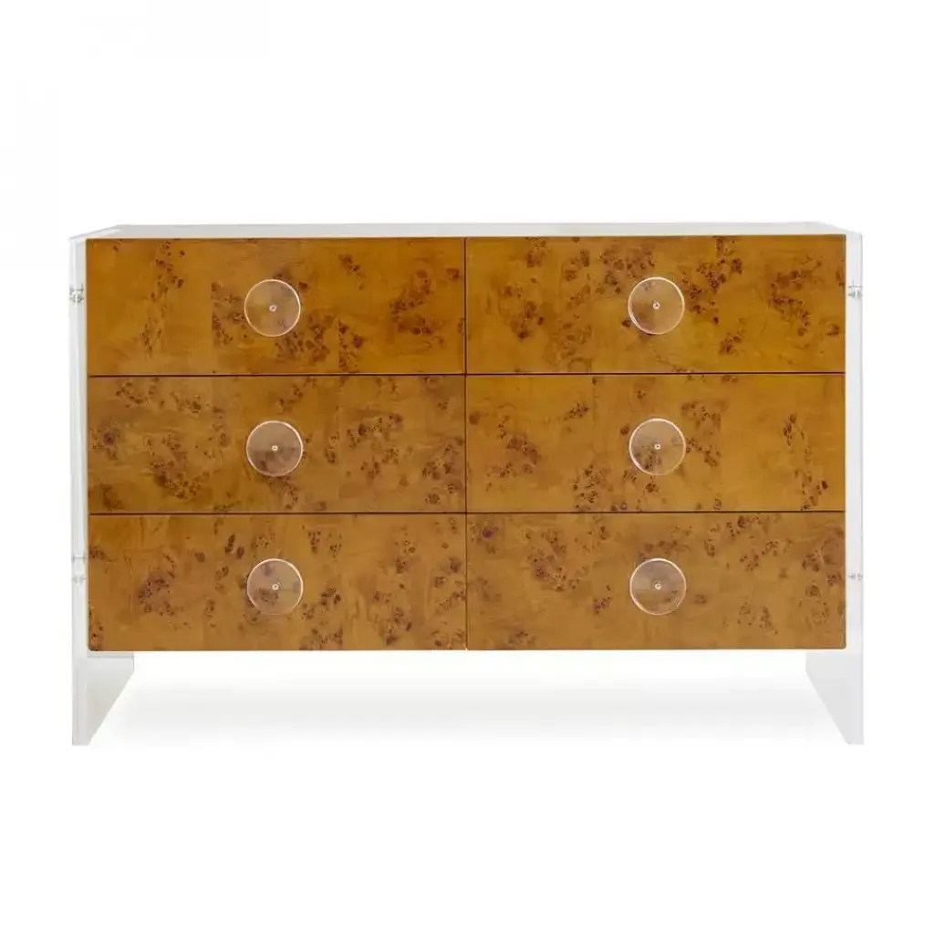 Worlds Away Plymouth Burl Wood Cabinet With Acrylic Hardware