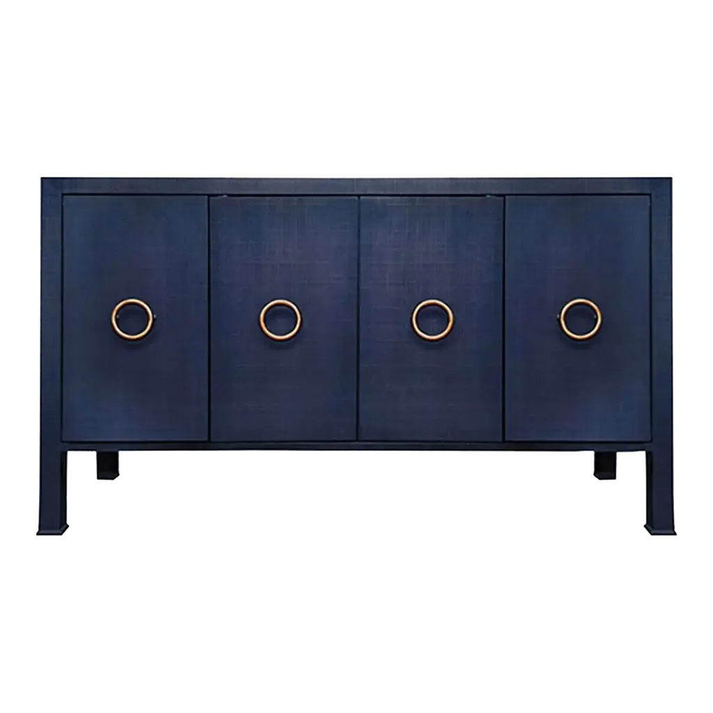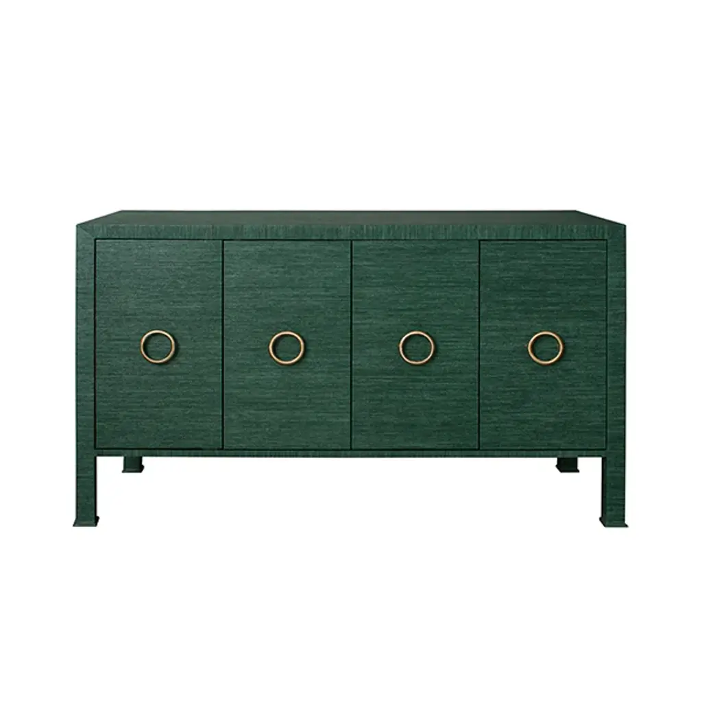 The Worlds Away Rue handcrafted cabinet features four doors and antique brass hardware. This versatile cabinet offers an abundance of storage and makes a stylish statement wherever used! Available in three finishes.