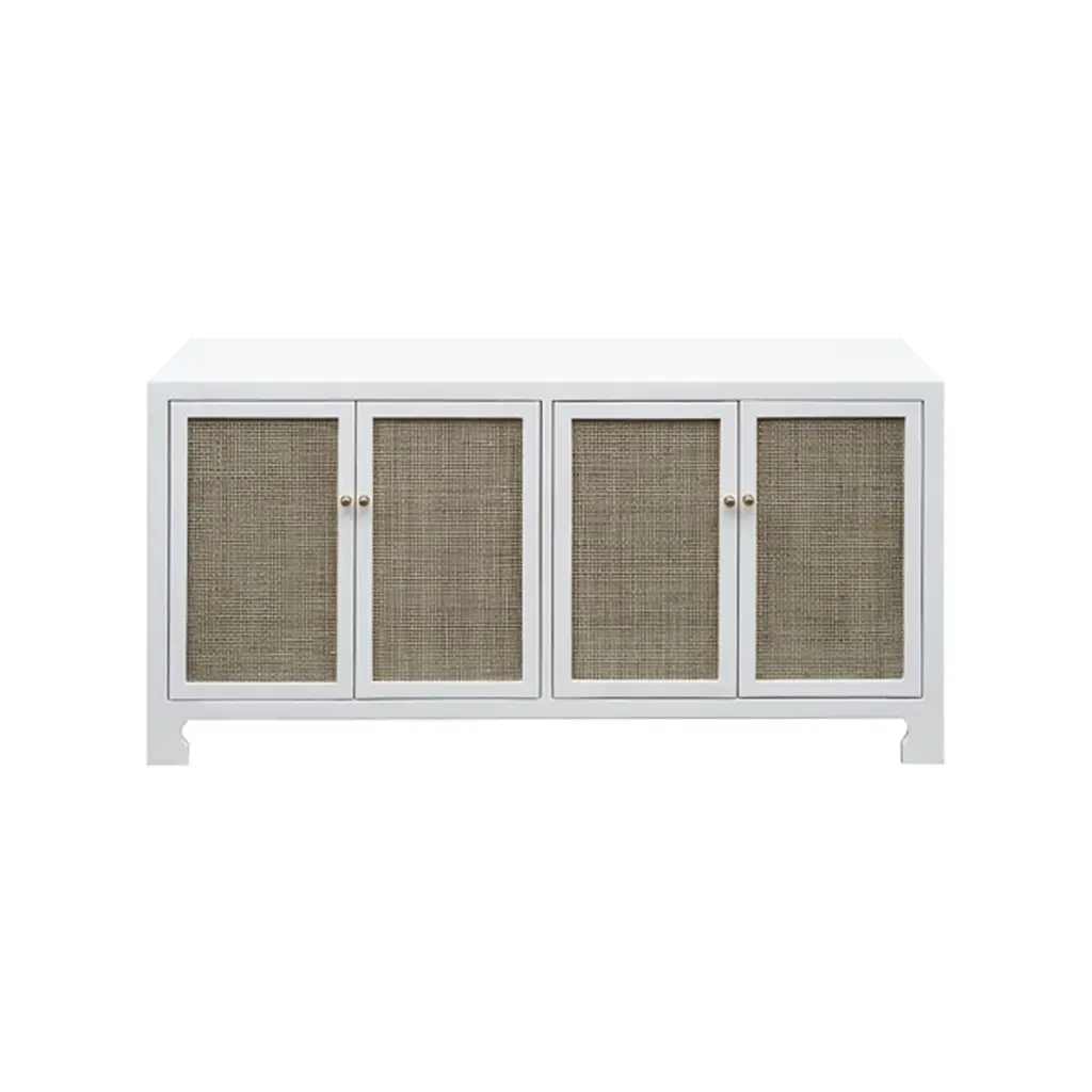 The Worlds Away Sofia handcrafted cabinet features four cane doors and brass hardware. The Sofia offers an abundance of storage and makes a stylish statement wherever used!