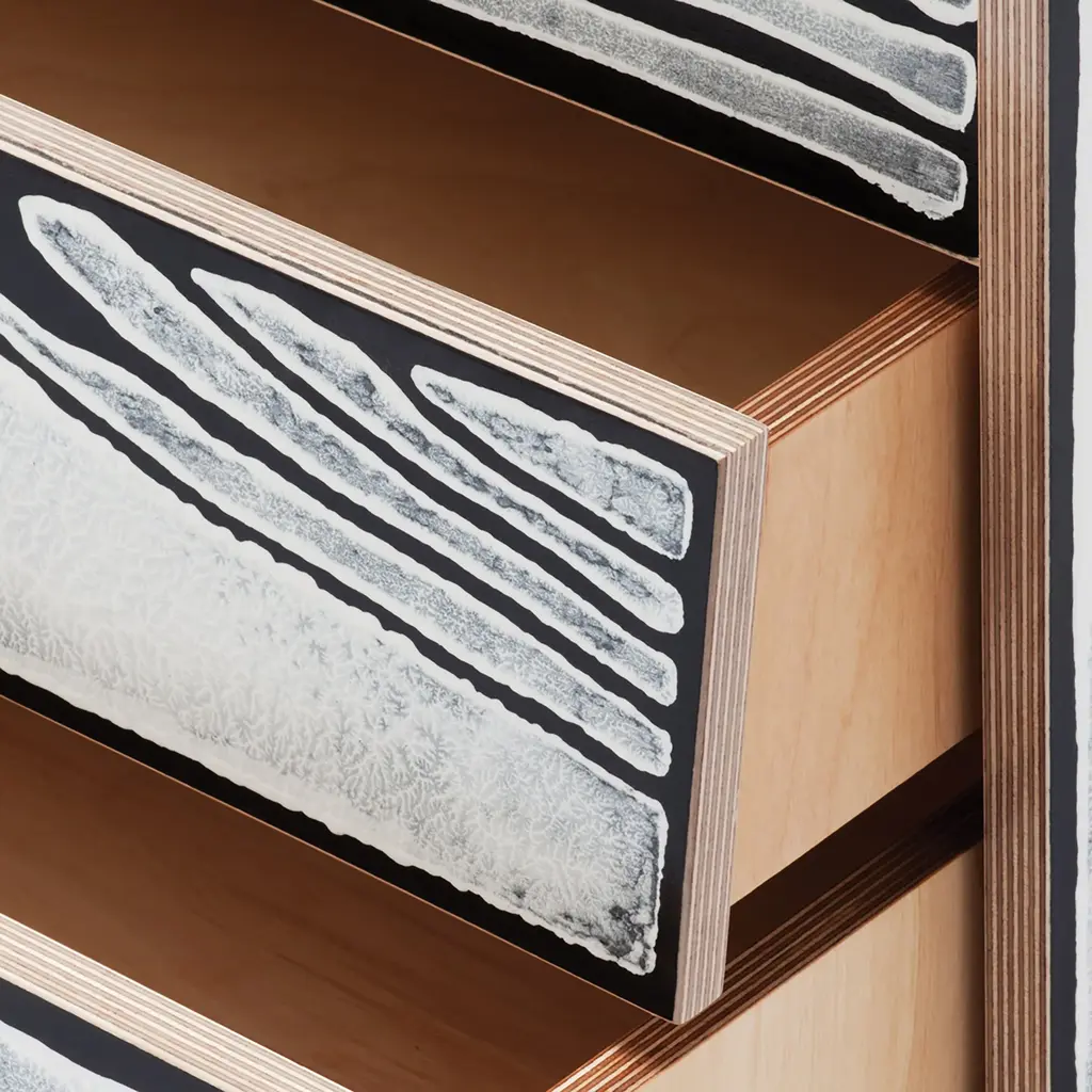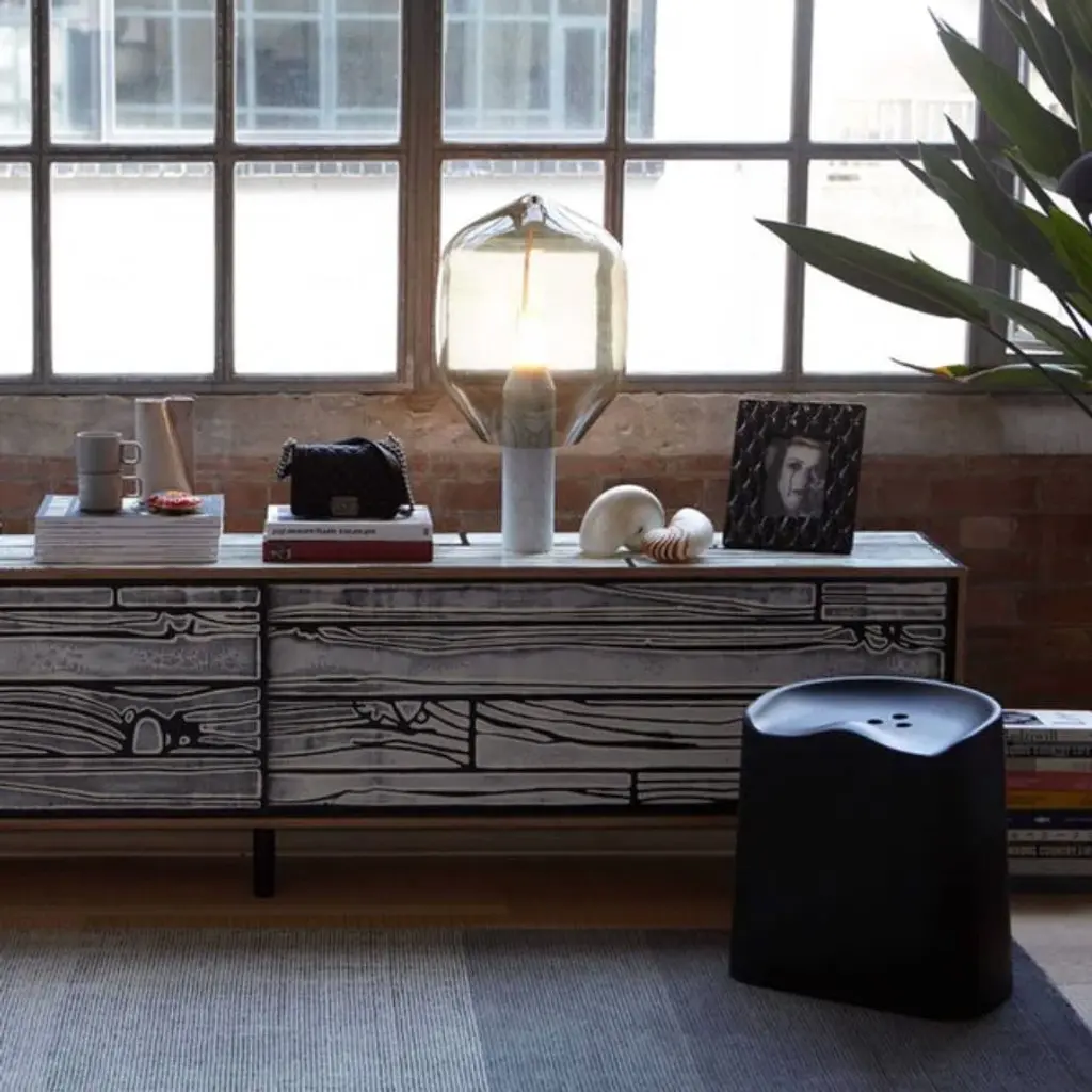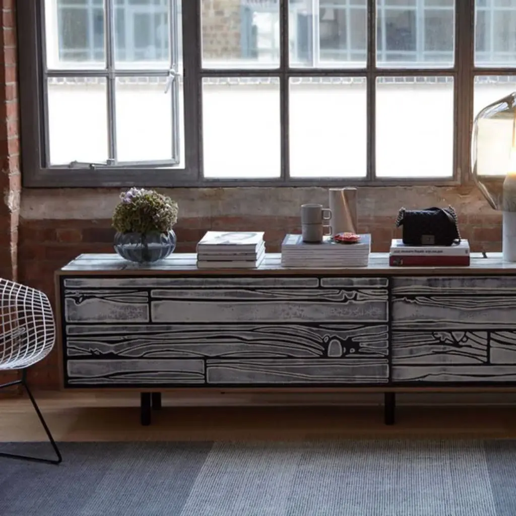 British artist Richard Woods seemingly lives in a world covered with his signature giga-print motifs, including this beaut of a low wood cabinet. Turning a once-prosaic furnishing into statement decor, the pattern is created by hand using individual wood blocks. Establishment & Sons creative director Sebastian Wrong provides the low-slung design, with its sliding doors that conceal shelves within. Striking and serviceable, this collector’s piece is available in a range of distinctive color combinations and finished in clear lacquer./p>