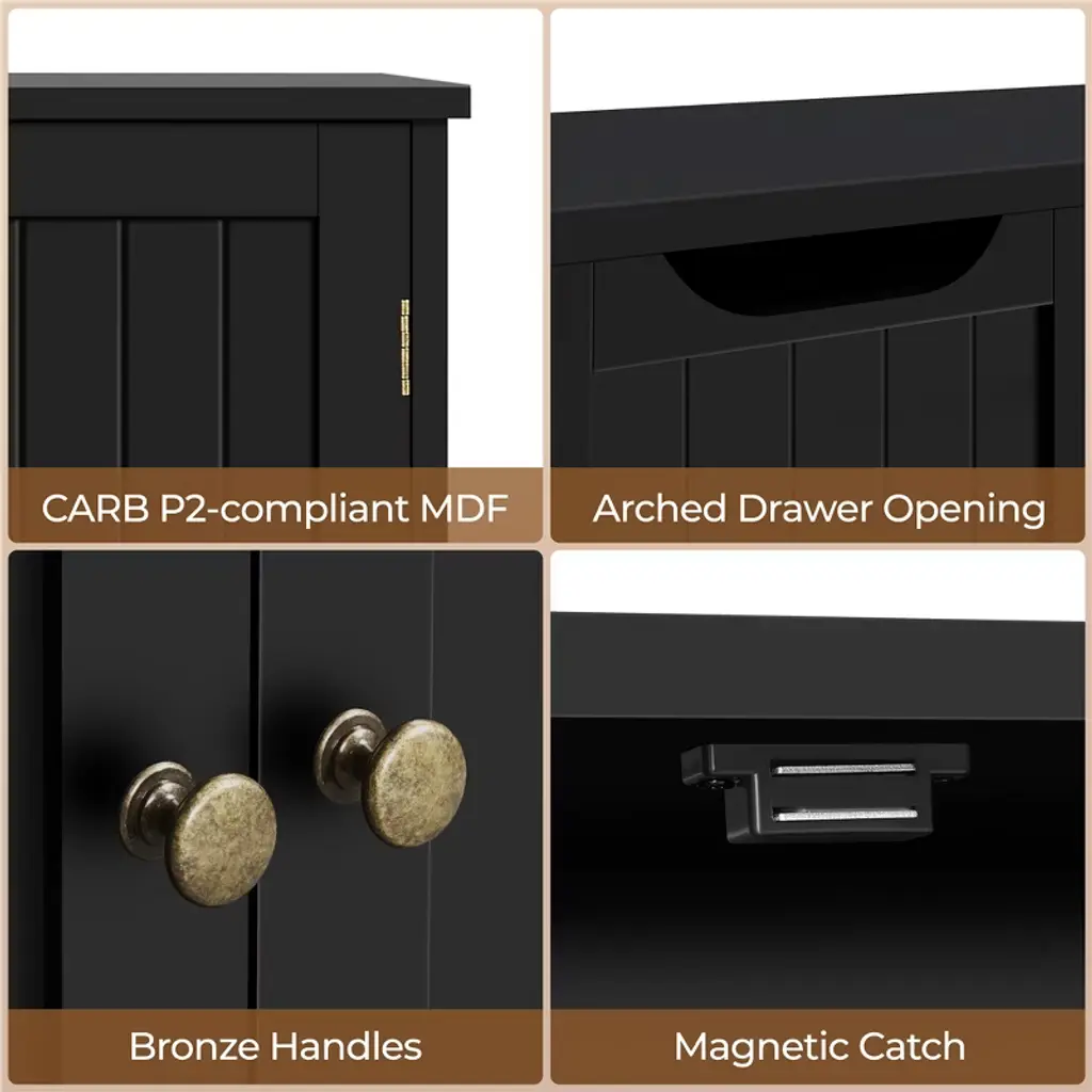 Yaheetech Wooden Bathroom Storage Cabinet Slide Floor Cabinet, Black
