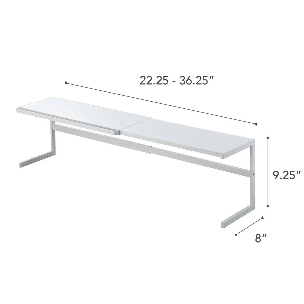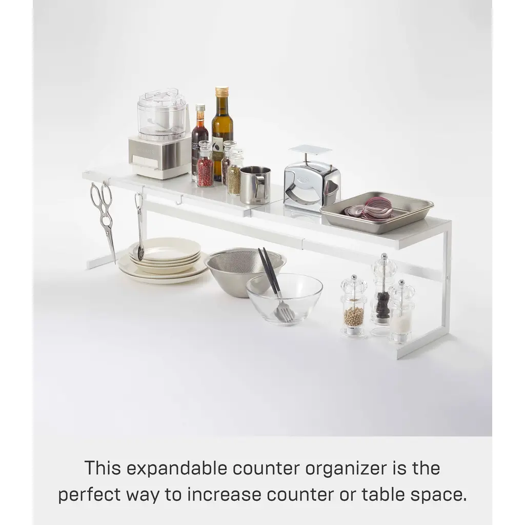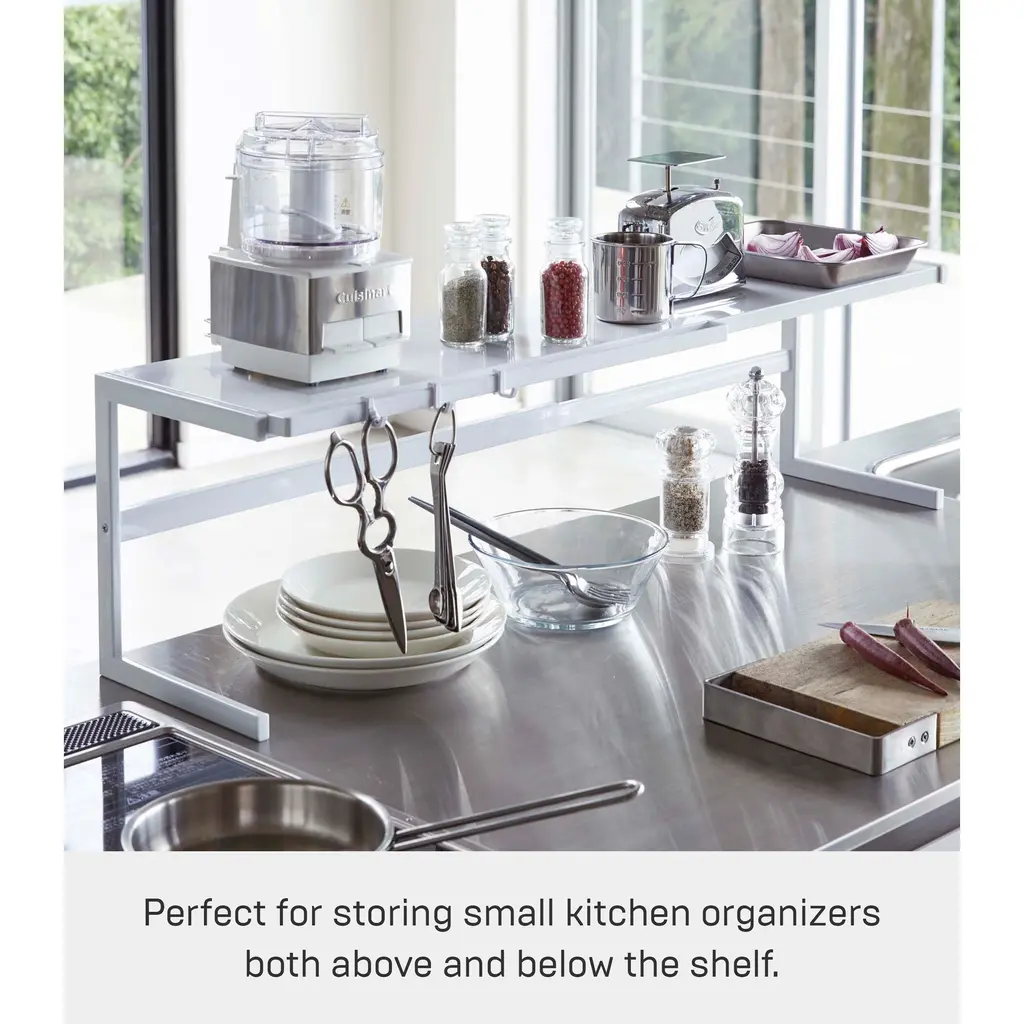 Yamazaki Home Expandable Countertop Shelf, Steel, Large, Holds 23 Lbs, Expandable - L 8.86 X W 21.26 X H 9.84 Inches - White