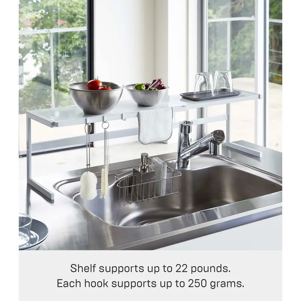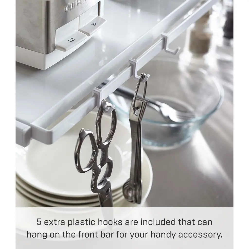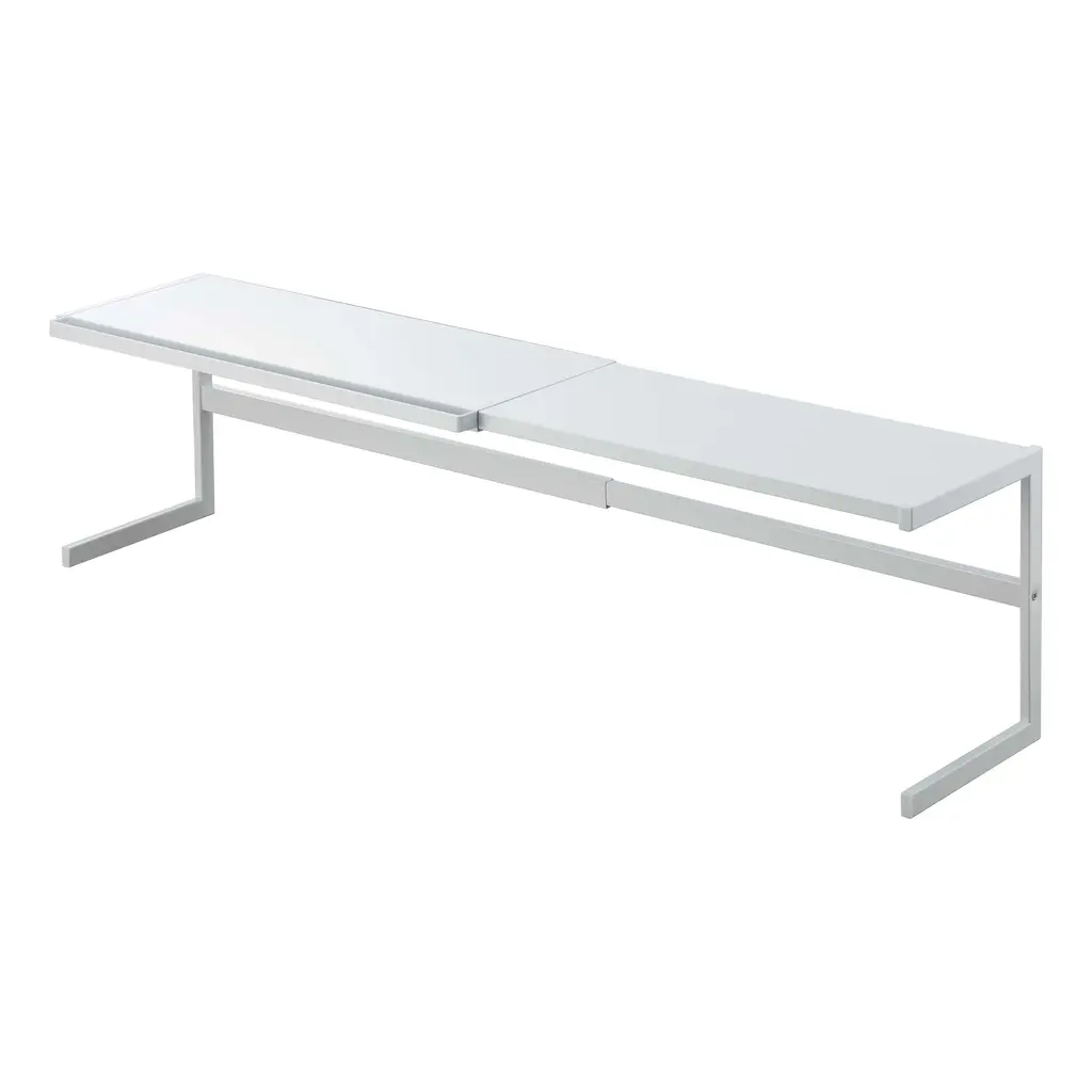 Yamazaki Home Expandable Countertop Shelf, Steel, Large, Holds 23 Lbs, Expandable - L 8.86 X W 21.26 X H 9.84 Inches - White