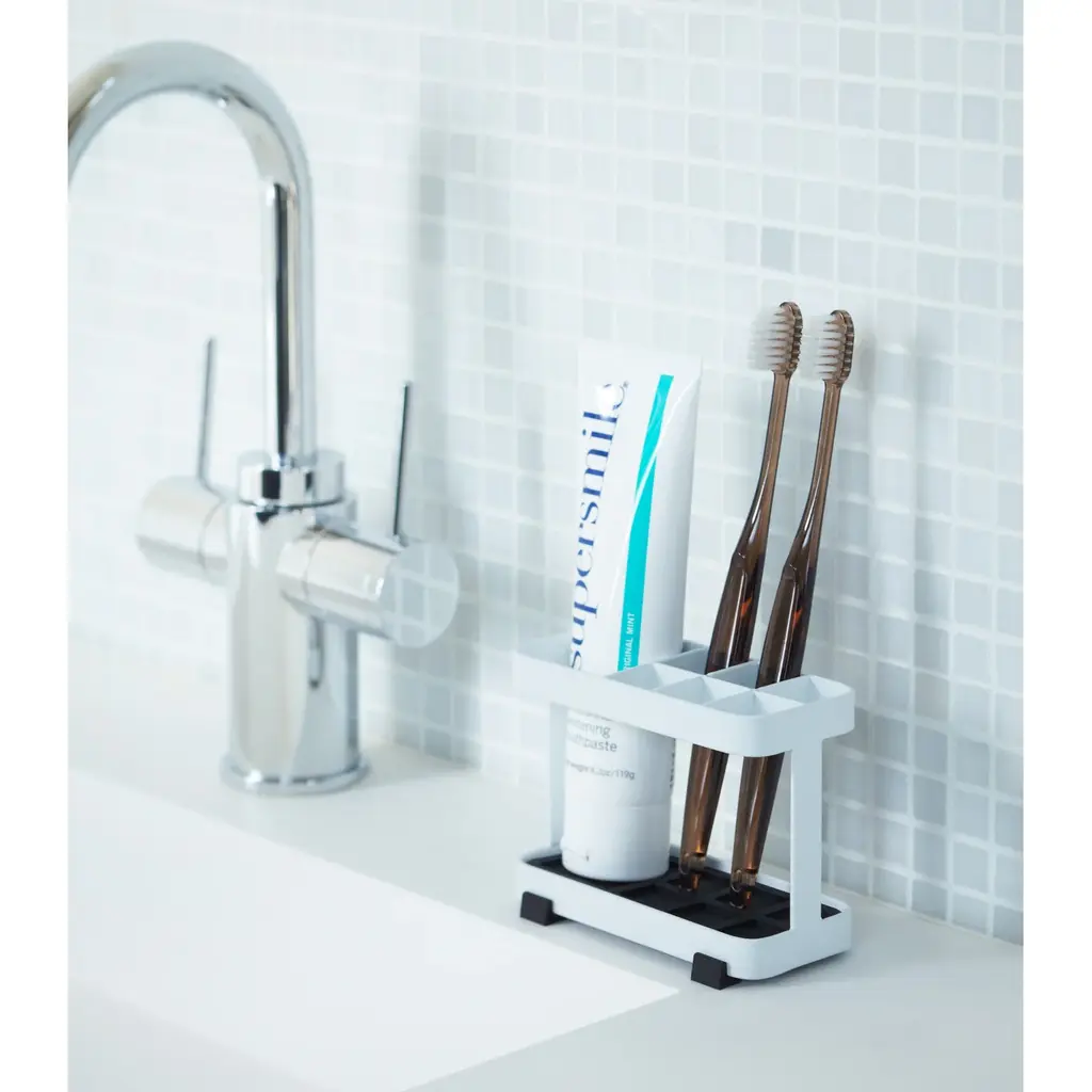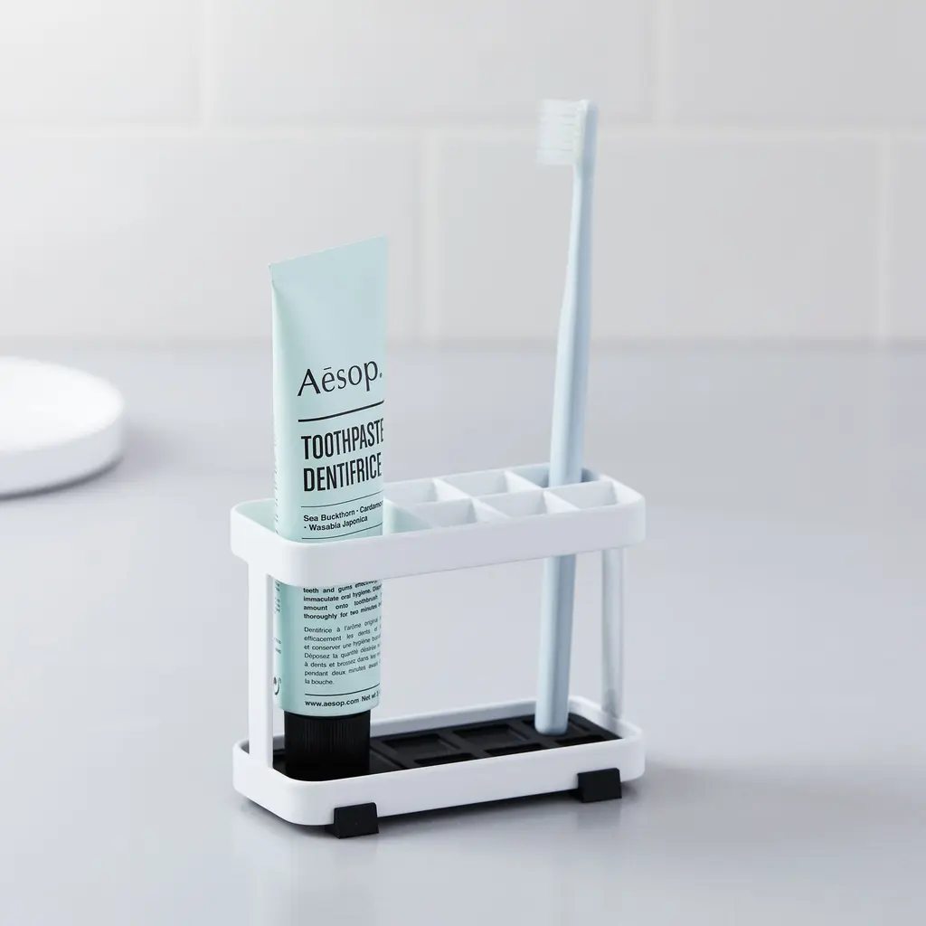 Yamazaki Home Toothbrush And Toothpaste Stand, Steel - L 1.97 X W 4.33 X H 3.15 Inches - White