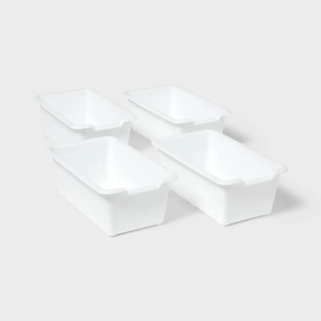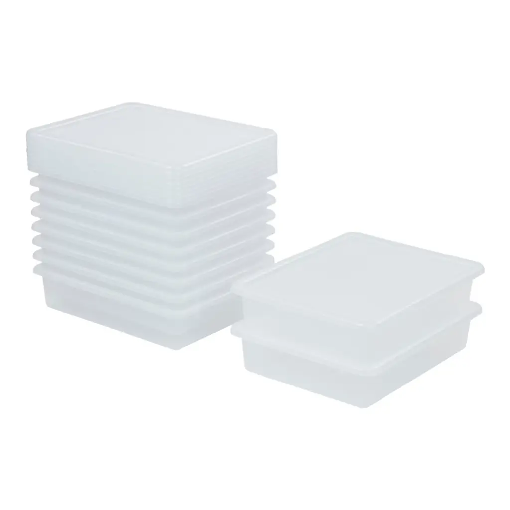 "Add harmony and organization in your living space with these practical storage bins Compartmentalize Everything Cheering up your space is our ultimate goal! Storage bins can turn a messy room into an organized regime. From small household items to office supplies, our containers can help you keep everything nice and contained. Made of the highest quality plastic material, these BPA-free storage bins withstand daily wear n’ tear and provide practical storage solutions to keep drawers, closets, cabinets, and other spaces around your house clutter-free. Stack As You Fill Them Up If you buy more than one storage bin, you can easily stack these baskets in an upright practice. The tight-fitting lid secures the content inside. They are useful for holding cosmetics, jewelry, nail supplies, beauty supplies, personal care products, and much more. When not in use, just stack them for easy storage. Two Available Sizes We offer the following sizes - Small - Measures: Upper Length 10.25 in. x 7.25 in. Upper Width x 3.25 in. Height. Lower Length 9.75 in. Lower Width 6.75 in. - Medium - Measures: Upper Length 14.25 in. x 10.25 in. Upper Width x 3 in. Height. Lower Length 13.75 in. Lower Width 9.75 in"