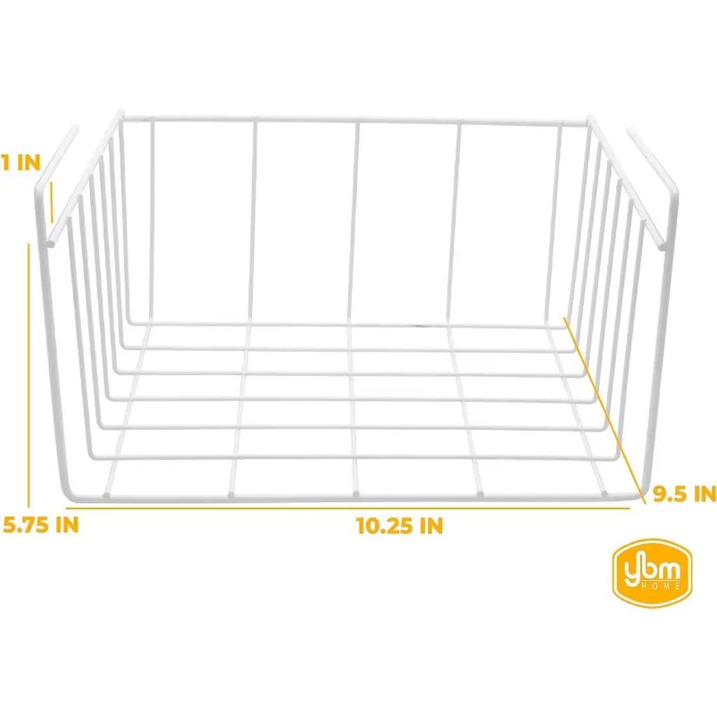 These Ybm Home sturdy wire under shelf baskets are designed to help increase your storage space. Installation is as easy as sliding the rack on an existing shelf and you are good to go! No drilling, tools, or additional parts needed! These shelves are made of Sturdy PE coated steel construction with a white coating and are designed to be both durable and aesthetically pleasing. Perfect for holding items such as wax paper, aluminum foil, or anything thing else that may be taking up valuable shelf space. The Ybm Home Under Cabinet Organizer creates simple and easy storage solutions throughout the home, including the kitchen. Simply slip the arms over the shelf and the basket underneath will neatly store extra utensils, place mats, dish towels or cookbooks. This versatile storage solution also works great in offices and hobby rooms to keep supplies organized. It is also ideal for linen closets to store hand towels and sheets, or in laundry rooms for dryer sheets and more. This hanging basket offers a multitude of storage options for the kitchen, bathroom, office, and any other room of the house. Dual hooks allow this basket to hang sturdily under any shelf, and wide opening makes it easy to store and remove items. Whether it's spices, jars, cans, or anything else you might find in your pantry, this basket will prove to be unbelievably useful Small Measures: 10 in. W x 9 in. L x 6 in. H