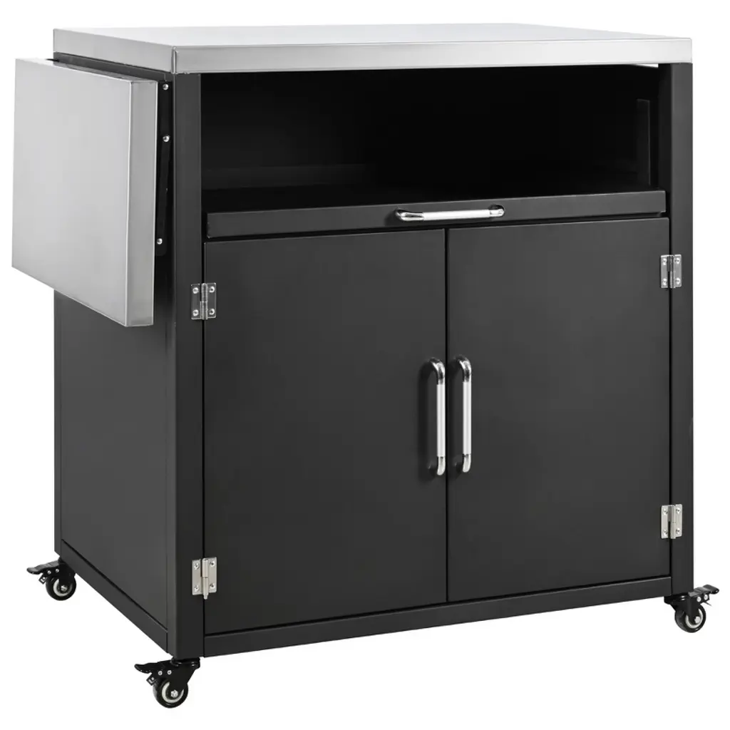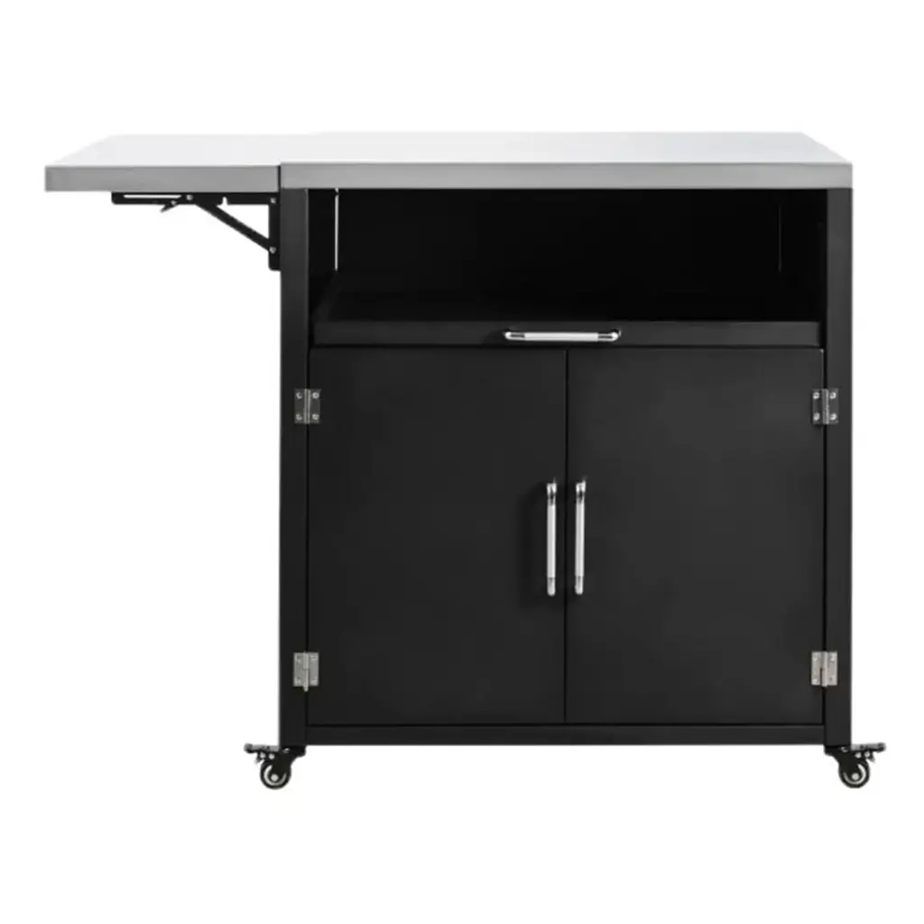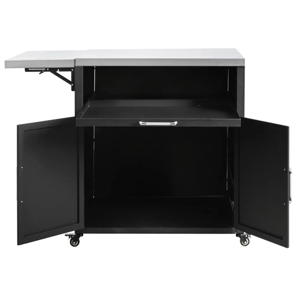 Yoocozz Outdoor Rolling Iron Cabinet With Folding And Extendable Work Surfaces, Ample Storage Space - Black