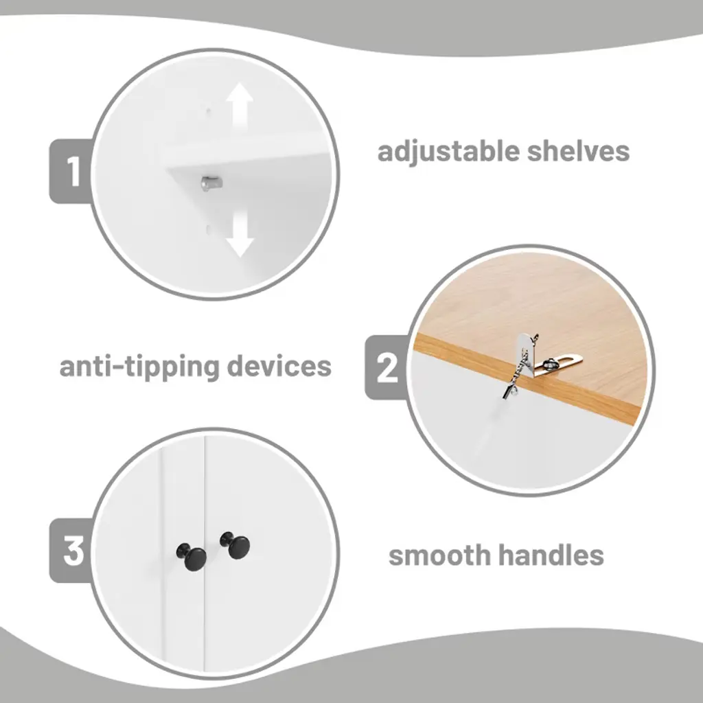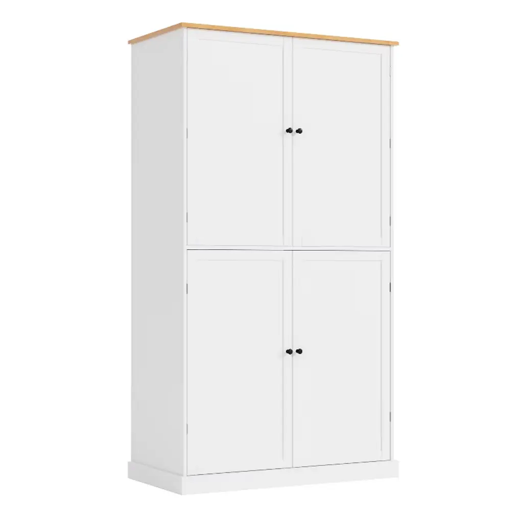 This Tall Freestanding Kitchen Pantry is a practical and stylish solution for maximizing storage in your kitchen. The expanded size, larger than the usual 30x15 inch, offers a significant boost in storage capacity. Made from durable painted MDF, the pantry features two built-in drawers, two separate cabinets, two adjustable shelves, and eight door shelves. This thoughtful design ensures that everything is organized and easily accessible, making it a perfect addition to any kitchen or dining room.