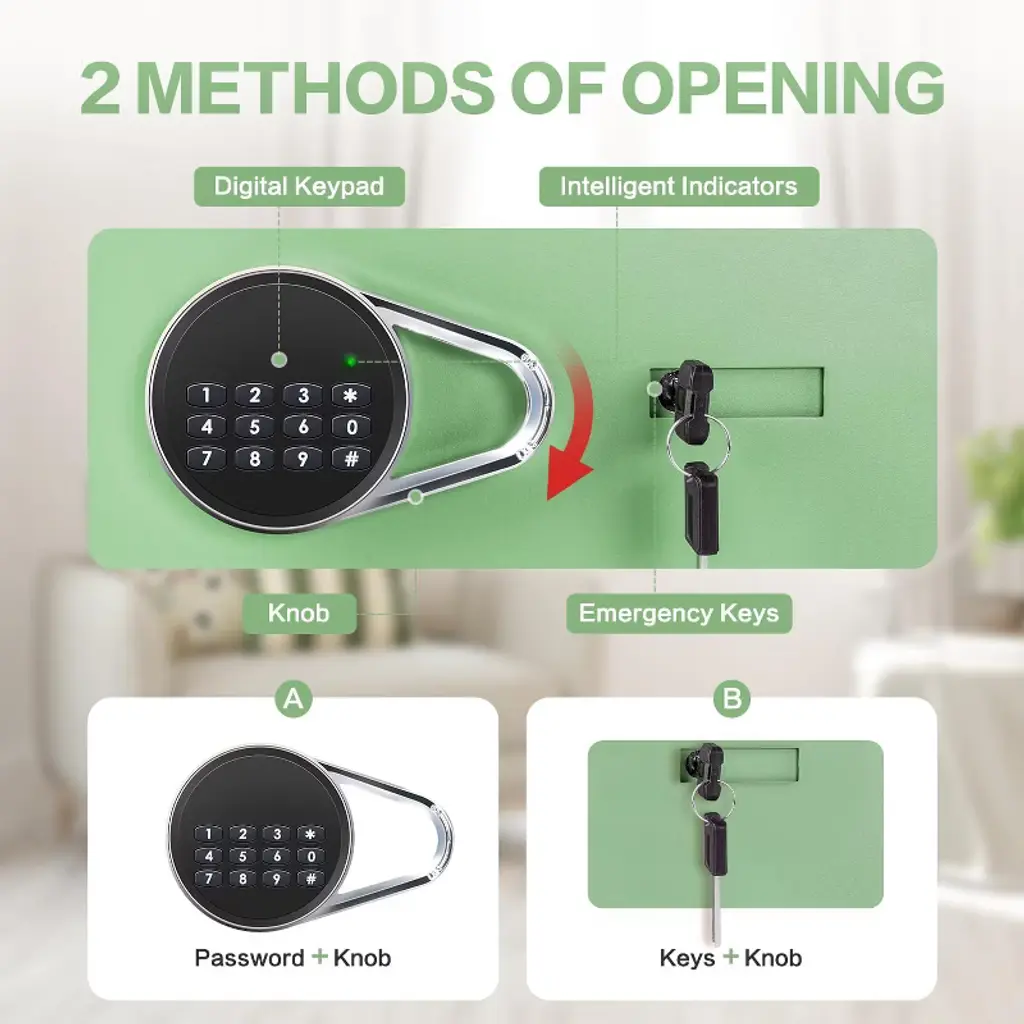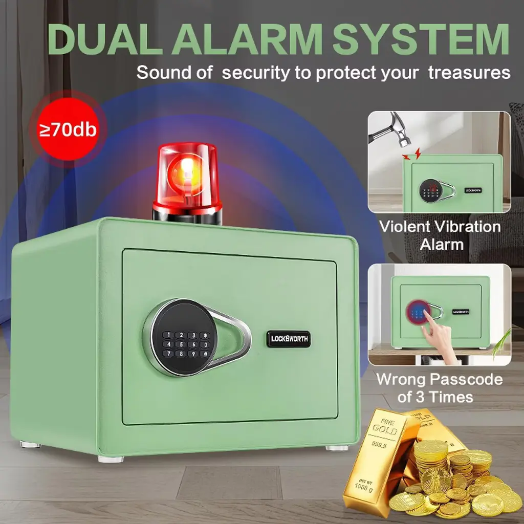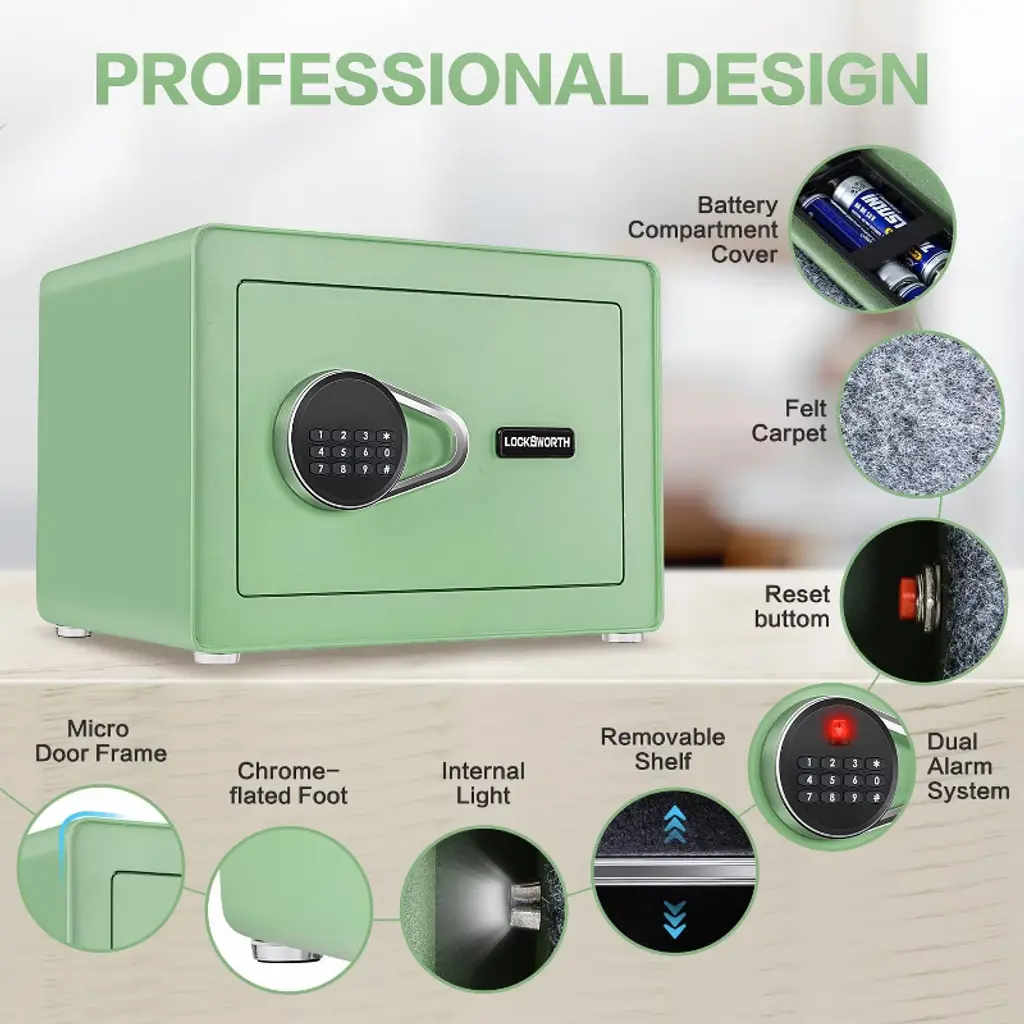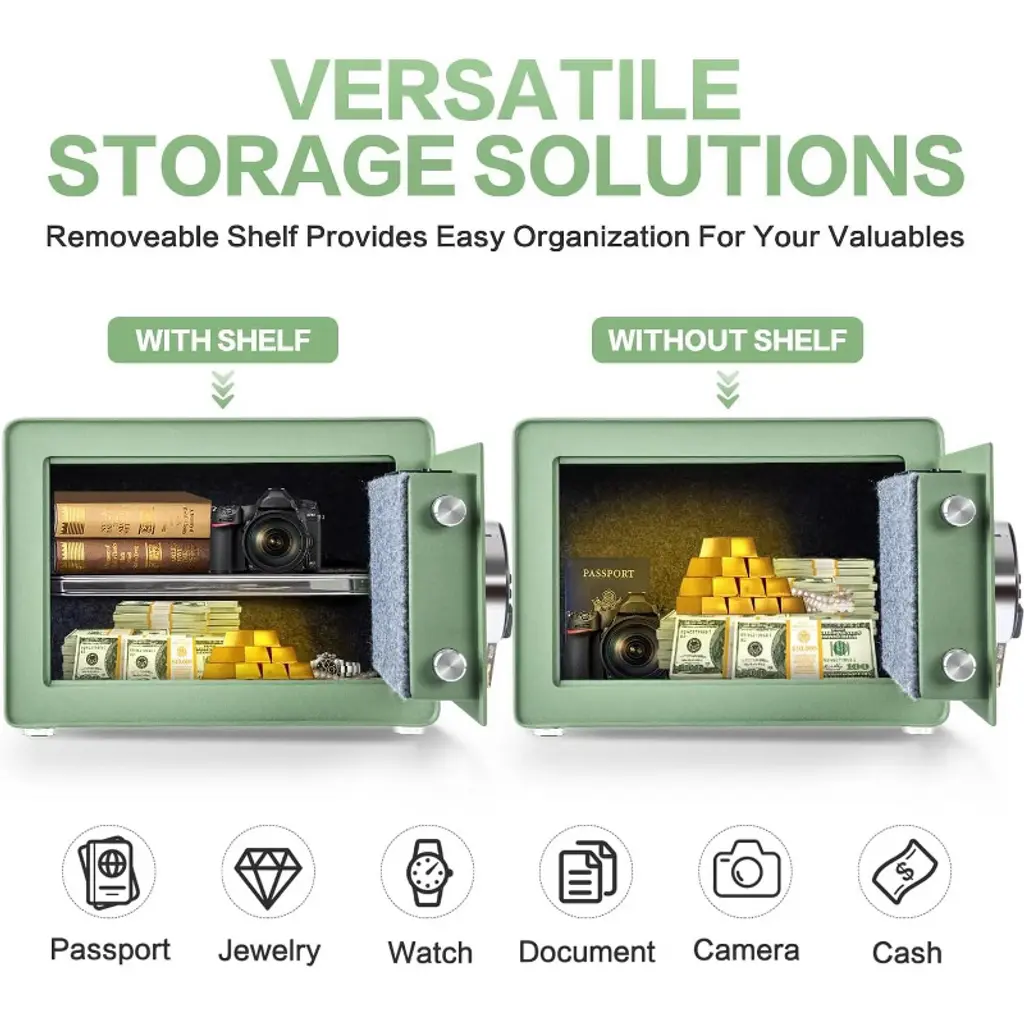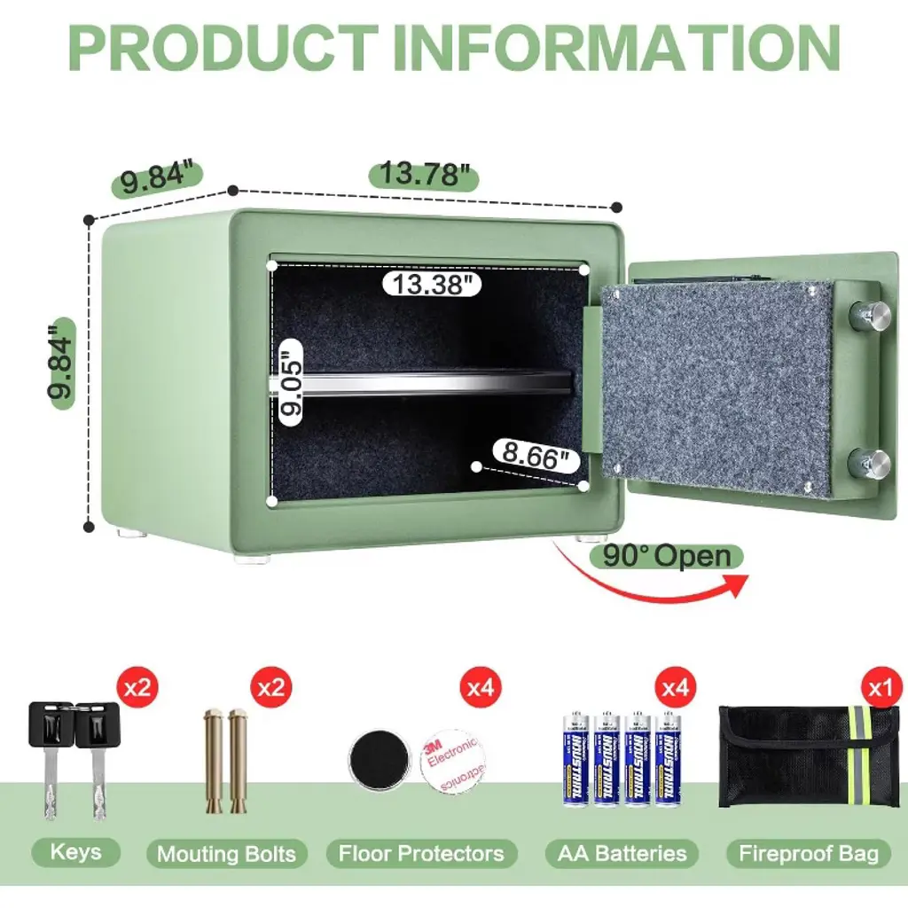 1.0 Cubic Feet Safe Box, Small Safe W/removable Shelf, Alarm System, Digital Electronic Security Money Box, Green